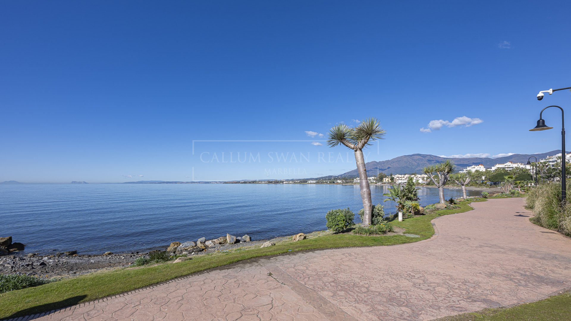 Positioned directly on the paseo marítimo, the home is perfectly placed for everyday convenience, with numerous cafés, restaurants, and shops just a short stroll away. By car, a wide range of amenities and leisure options, including international schools and established golf courses, are close at hand. Estepona can be reached in approximately 12 minutes, San Pedro de Alcántara in 15 minutes and Marbella’s Golden Mile in around 25 minutes.