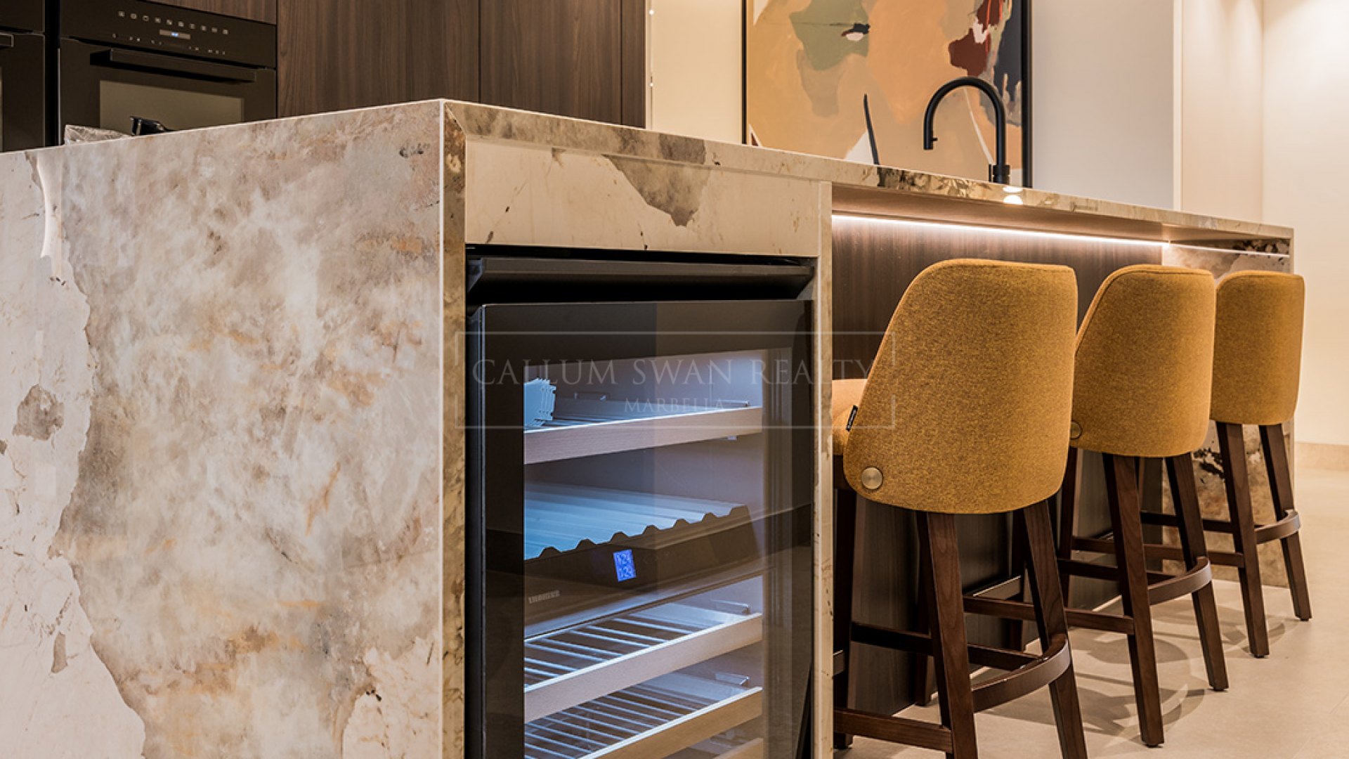 Other highlights of the property include a second kitchen, a laundry room, a wine fridge, a B&O sound system, and an underground parking space.