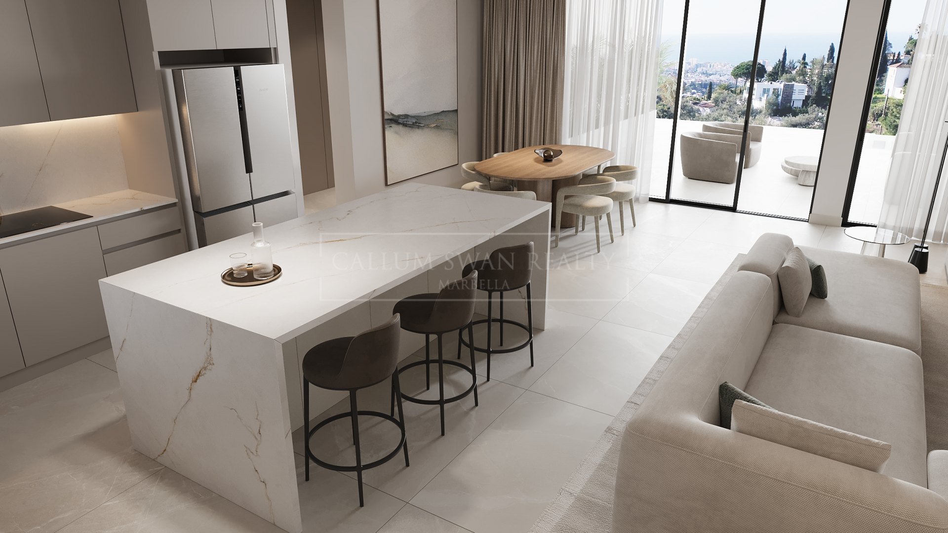 This four-bedroom penthouse is located on the New Golden Mile, within a newly built contemporary gated residential complex, just a 10-minute walk from the beach. The property is scheduled for completion in Q3 2027 and offers convenient access to international schools, restaurants, shops, golf courses and leisure facilities. Estepona town centre is approximately a 10-minute drive, Puerto Banús can be reached in around 15 minutes, and Marbella town centre is approximately 20 minutes away, placing the property in a well-connected residential area with good access to key destinations along the coast while maintaining a comfortable level of privacy for everyday living.