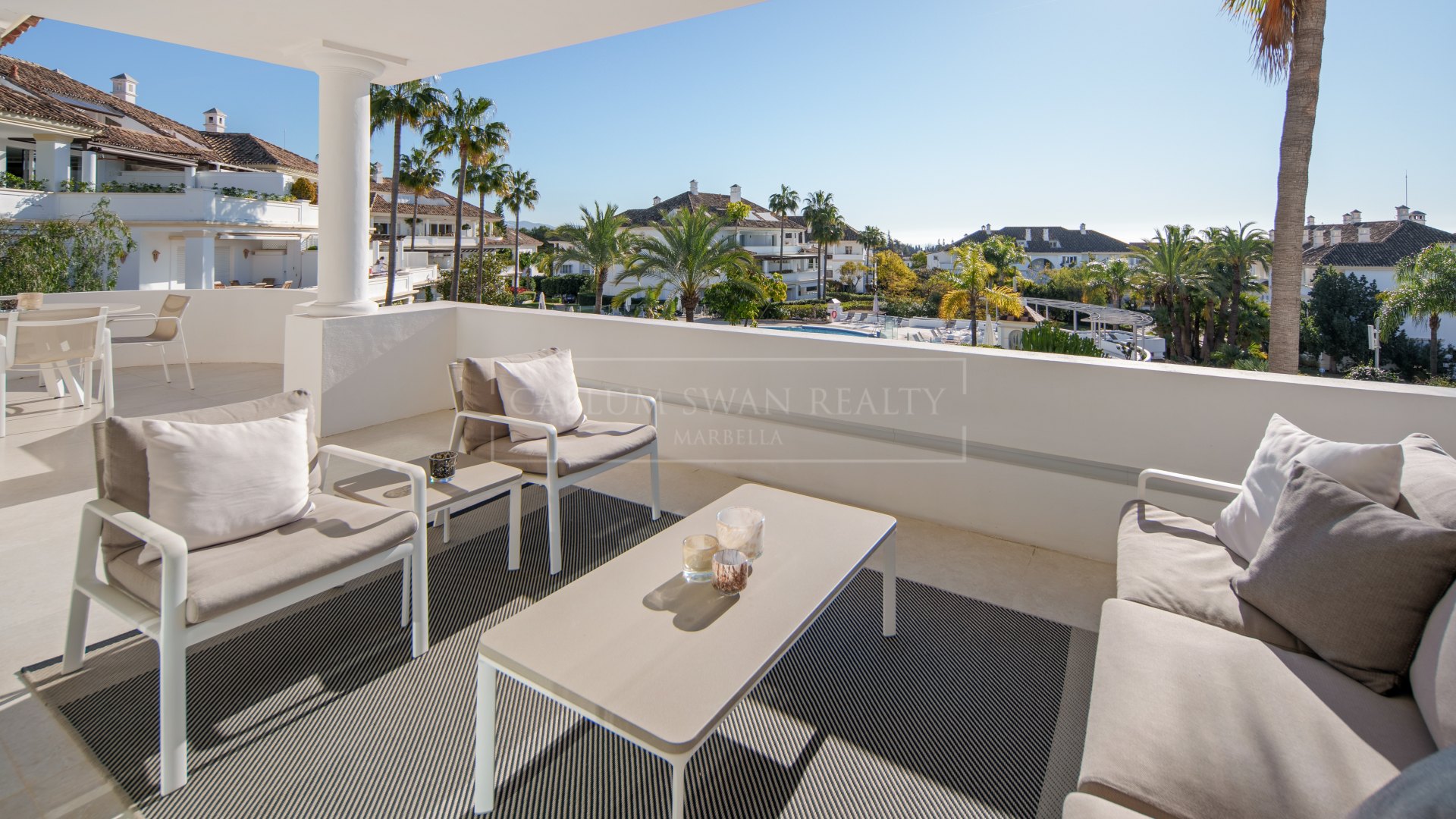 Monte Paraiso is recognised for its well-maintained communal areas and consistent standards. Residents have access to landscaped gardens, four outdoor swimming pools, an indoor pool, and a fully equipped fitness centre with squash courts, saunas and treatment rooms. The development also benefits from controlled access and 24-hour security.