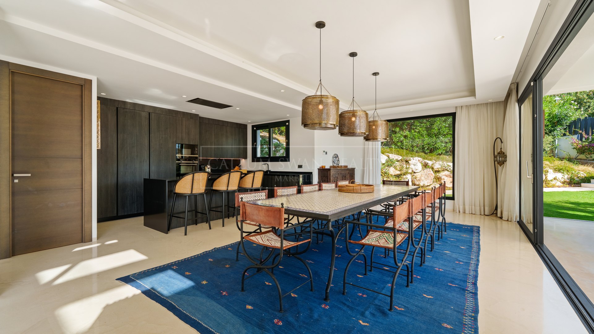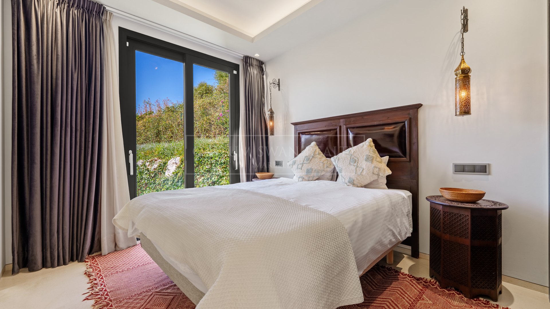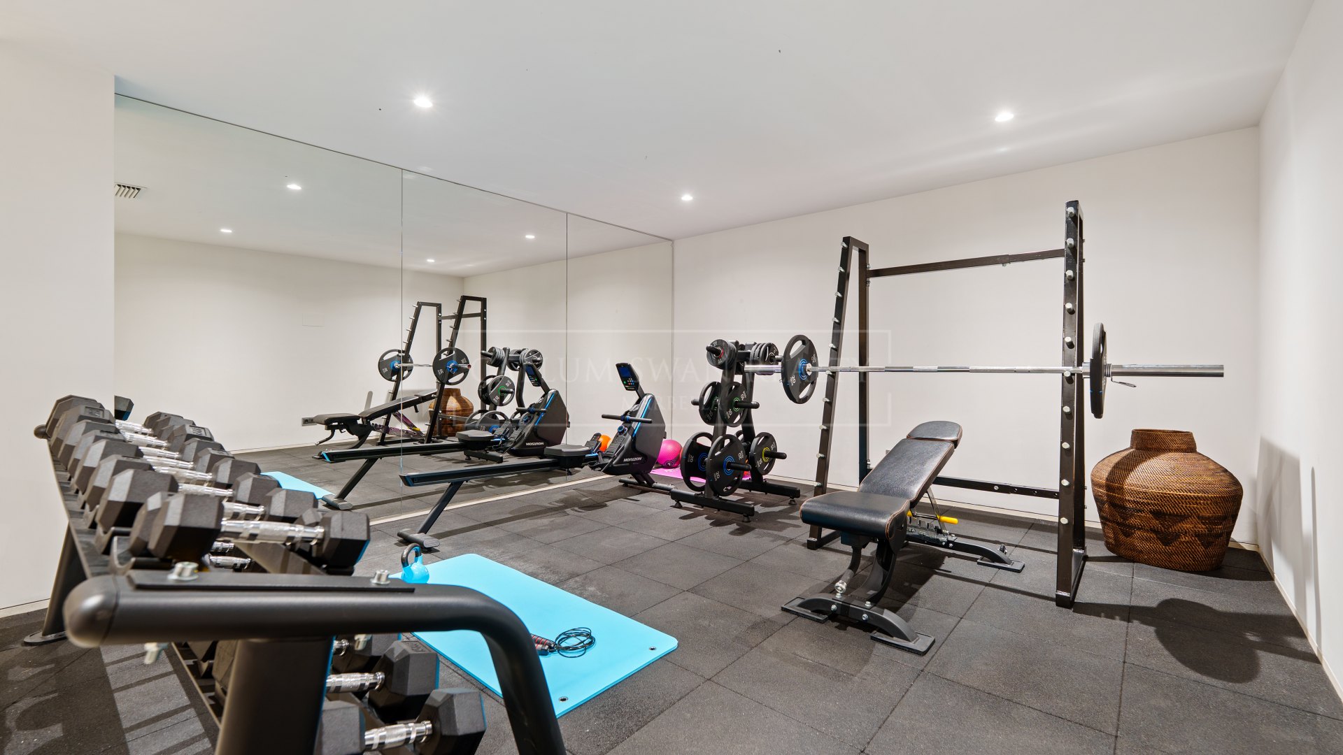 On the lower level, the property includes a multipurpose entertainment room, gym, wine cellar, three further en-suite guest bedrooms, and a private garage with space for several vehicles.