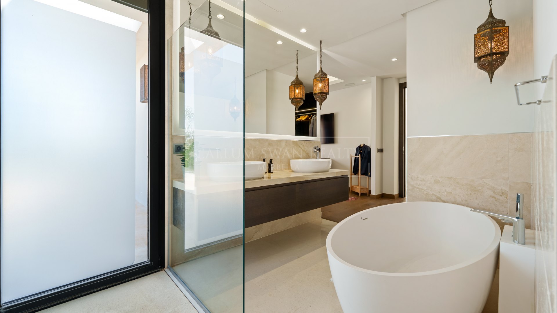 Additional features include underfloor heating throughout, air conditioning, and comprehensive security systems.