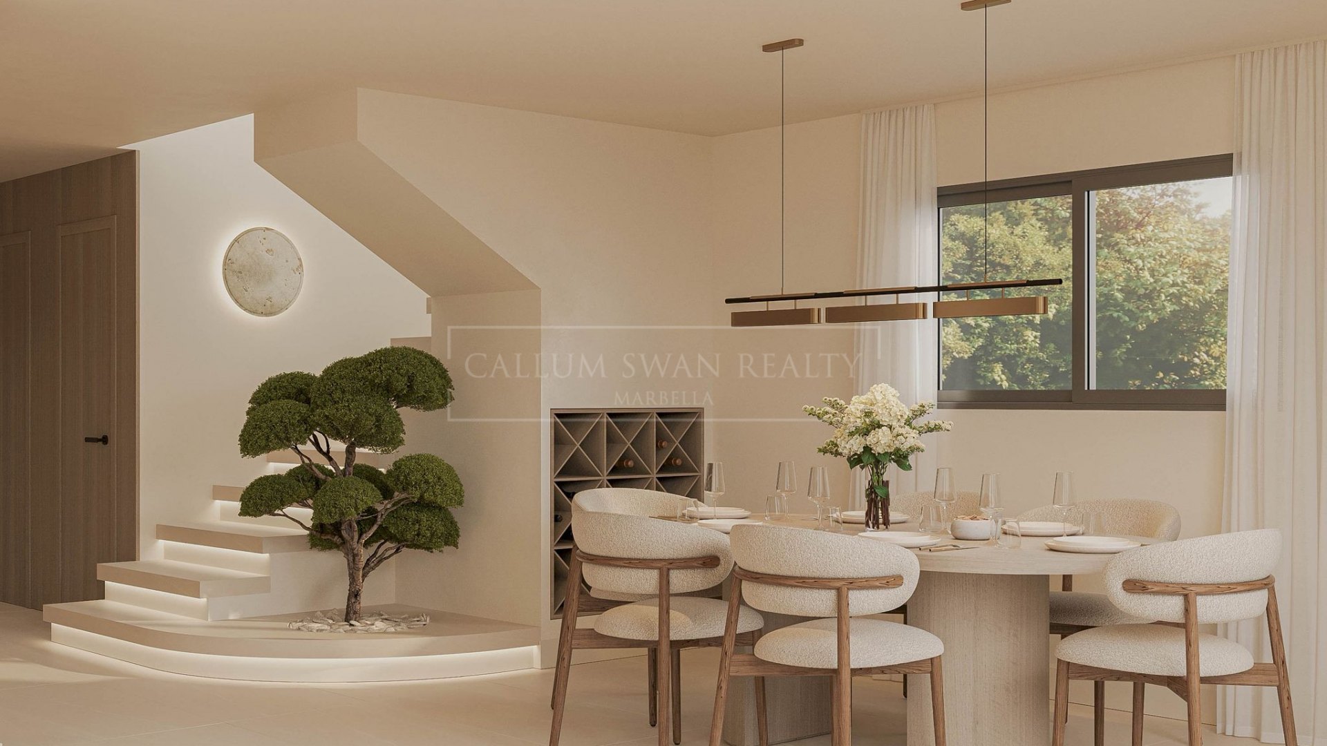 We present an elegant semi-detached house located within a gated community in the sought-after area of San Pedro Beach, Marbella. This well-established development is just a few minutes’ walk from all amenities — cafés, supermarkets, international schools, the promande and all the beautiful new beach restaurants with pools and traditional Chiringuitos — offering an ideal location both for year-round living and as a holiday home. The residential complex features landscaped gardens, a large communal swimming pool, a padel court, and private parking for residents, creating a peaceful and family-friendly environment just minutes from key destinations such as Puerto Banús Marina, Marbella’s Golden Mile, and Estepona.