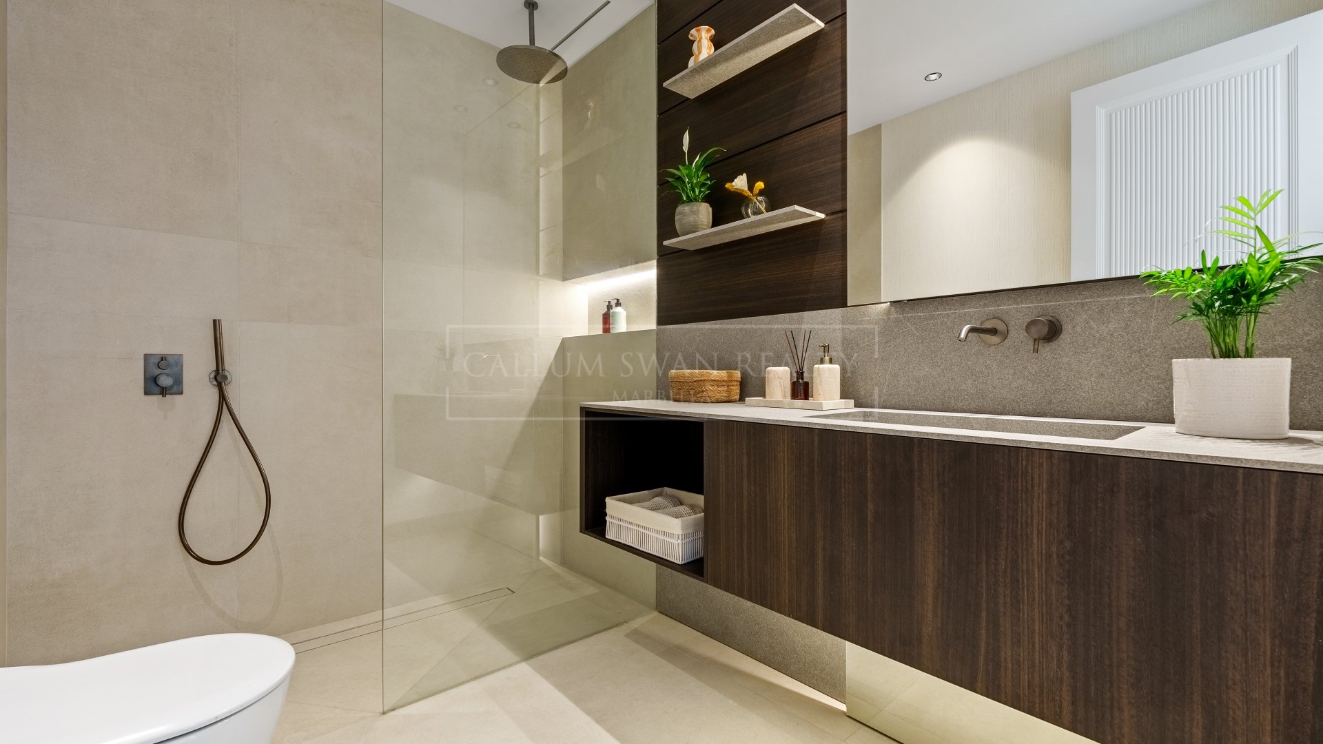 Esta villa contemporánea de cinco dormitorios se encuentra en las colinas de La Quinta, Benahavís, dentro de una comunidad privada cerrada con solo tres residencias premium, rodeada de campos de golf y escenarios naturales. Ubicada en una parcela de 1.160 m², la propiedad disfruta de una orientación elevada al suroeste con vistas abiertas al valle hacia el Mediterráneo. La ubicación ofrece un entorno tranquilo cerca de servicios clave, incluyendo el La Quinta Golf & Country Club a pocos minutos y el Valle de Golf de Nueva Andalucía que ofrece más campos de campeonato. La villa también está cerca de restaurantes exclusivos, tiendas de lujo, escuelas internacionales y las playas de Marbella y San Pedro de Alcántara, todas accesibles en menos de 10 minutos. La comunidad cuenta con seguridad las 24 horas.