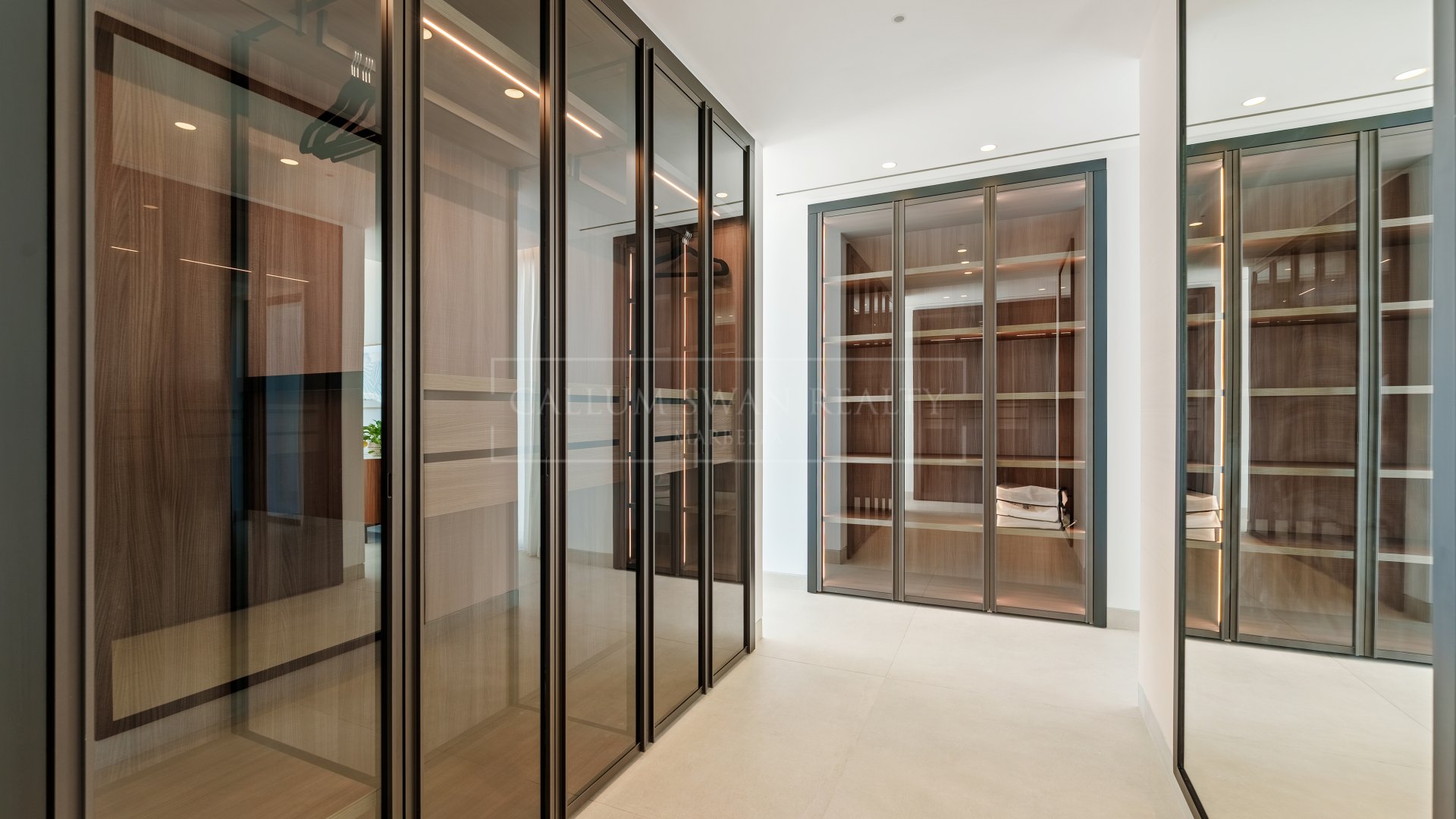 Distribuida en tres niveles, la villa combina vistas panorámicas con interiores modernos y abundante luz natural. La planta baja presenta un diseño de planta abierta con áreas de sala y comedor posicionadas para maximizar las vistas. Una cocina contemporánea se une al espacio del comedor y en este nivel también se encuentra un dormitorio de invitados con baño en suite. Grandes puertas correderas conducen a la terraza principal, que cuenta con amplias zonas exteriores enmarcando la piscina infinita de 51,50 m², junto con áreas de descanso y comedor con vistas a los jardines.