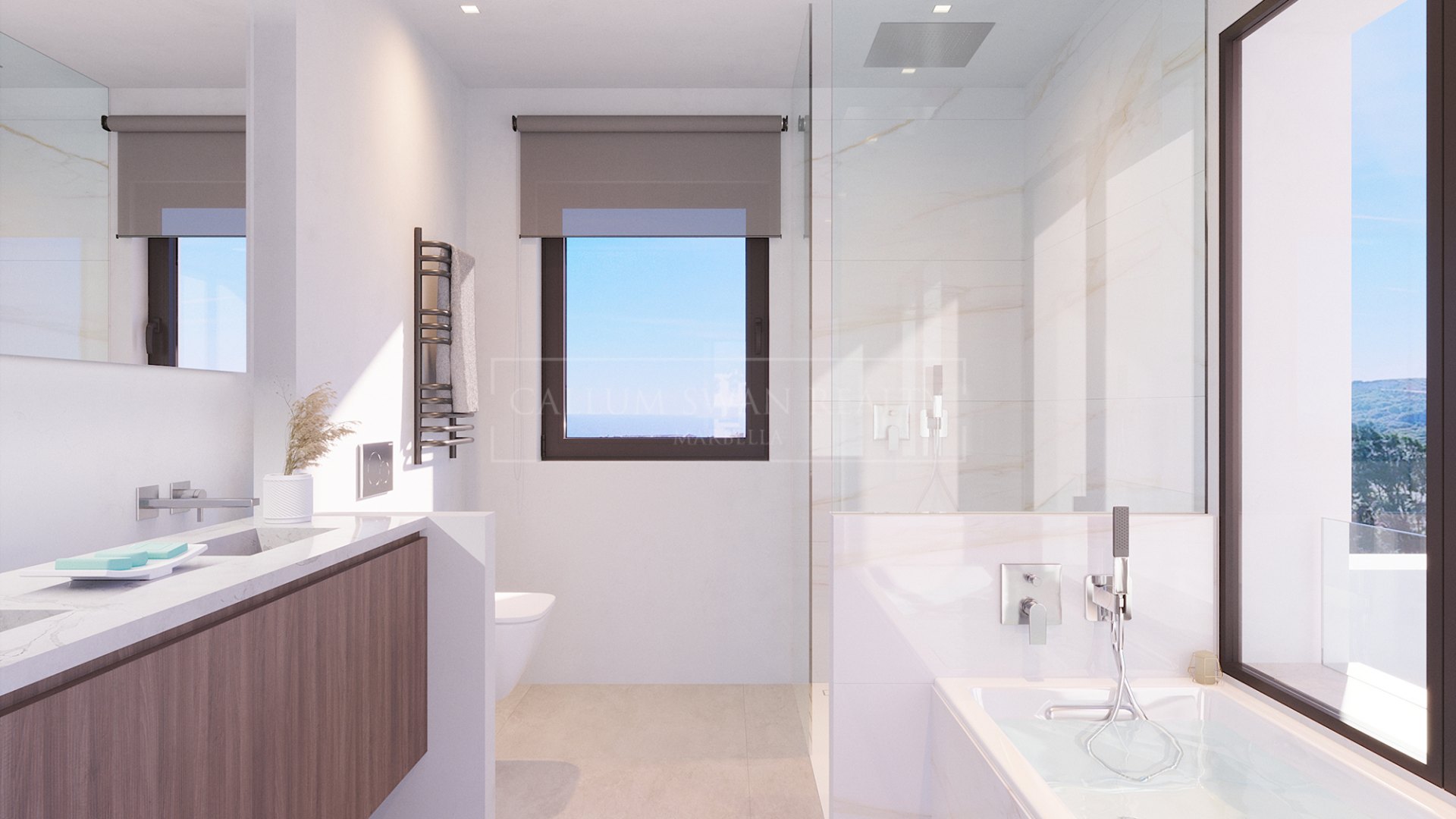 Esta villa contemporánea de cuatro dormitorios forma parte de un nuevo desarrollo en planos de 10 viviendas, ubicado dentro de Estepona Golf. Se encuentra cerca de otros campos conocidos como Finca Cortesín Hotel Golf & Spa y Casares Costa Golf, con la playa a solo cinco minutos. El centro de Estepona se sitúa a diez minutos en coche, mientras que San Pedro de Alcántara y Marbella pueden alcanzarse en menos de 30 minutos, ofreciendo acceso a colegios internacionales, instalaciones deportivas, hospitales internacionales, centros comerciales y restaurantes.