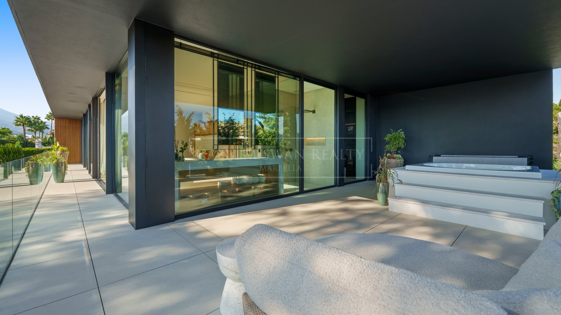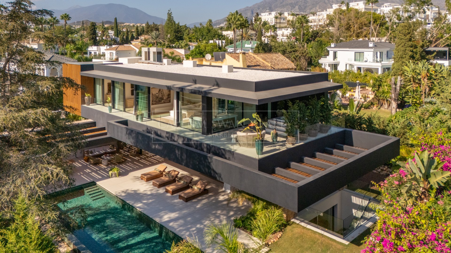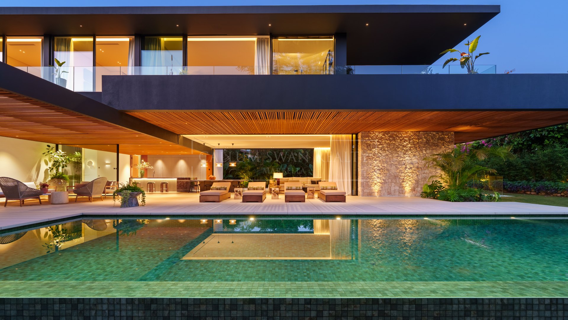 Esta excepcional propiedad, situada en el prestigioso Valle del Golf de Nueva Andalucía, combina la elegancia mediterránea con influencias balinesas contemporáneas. Situada en una parcela en ...