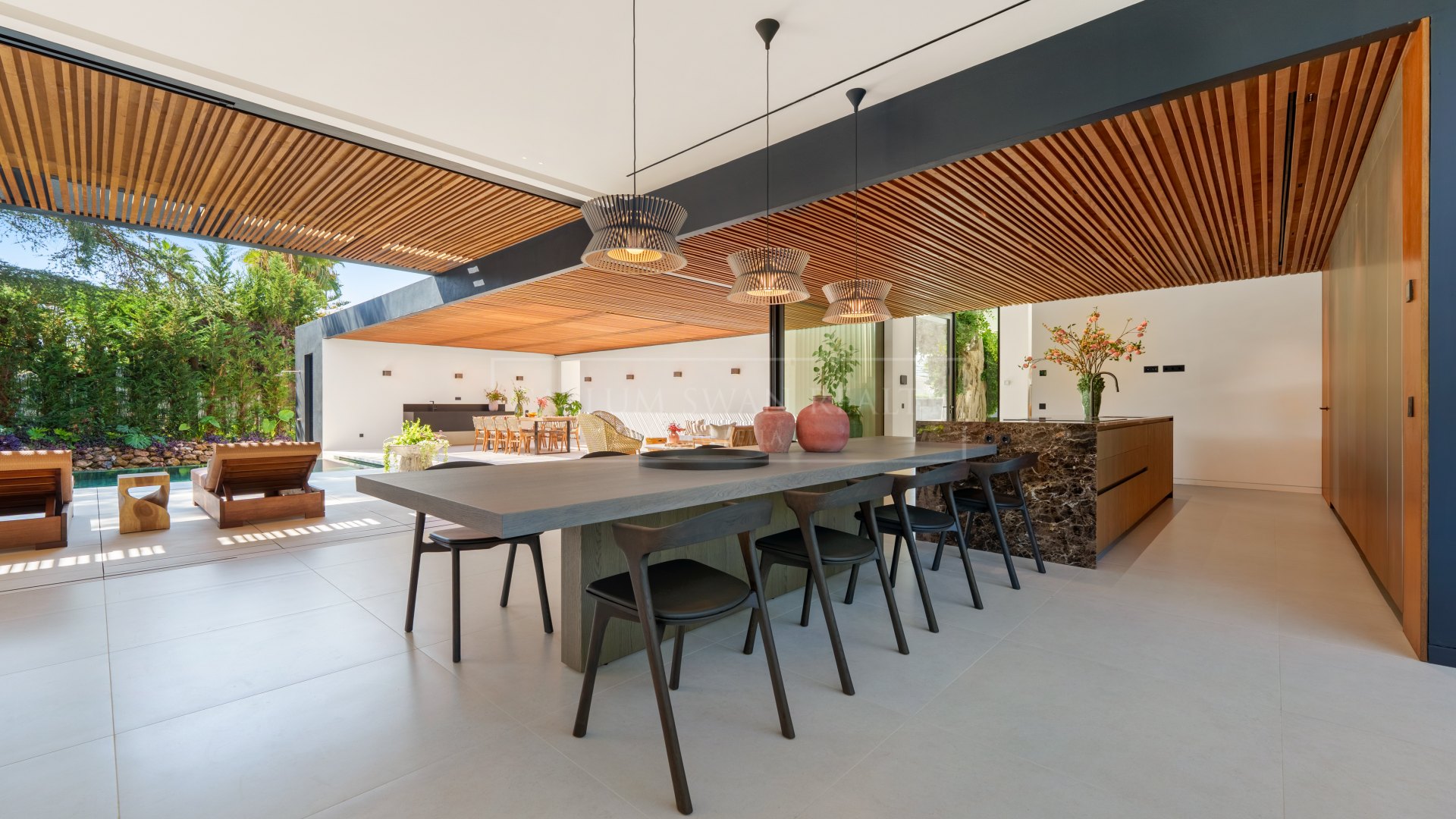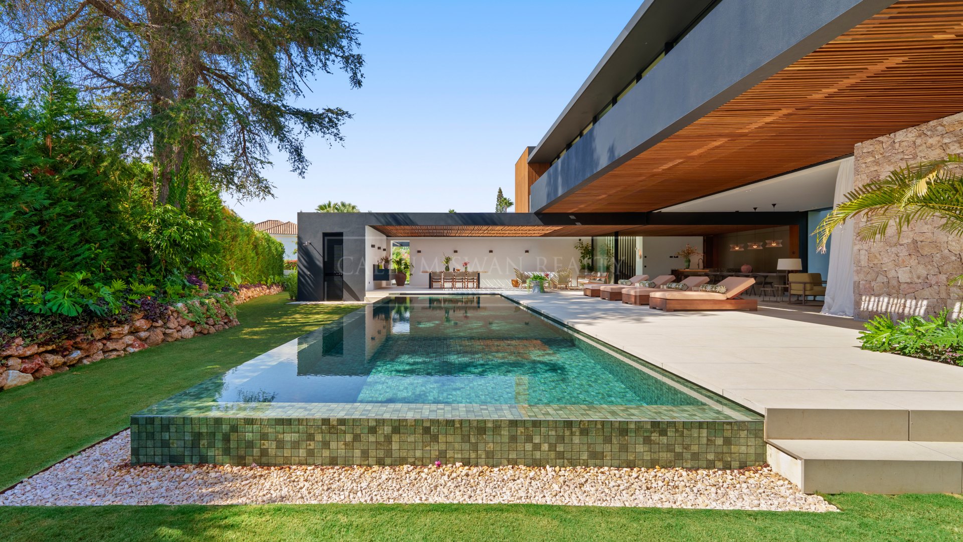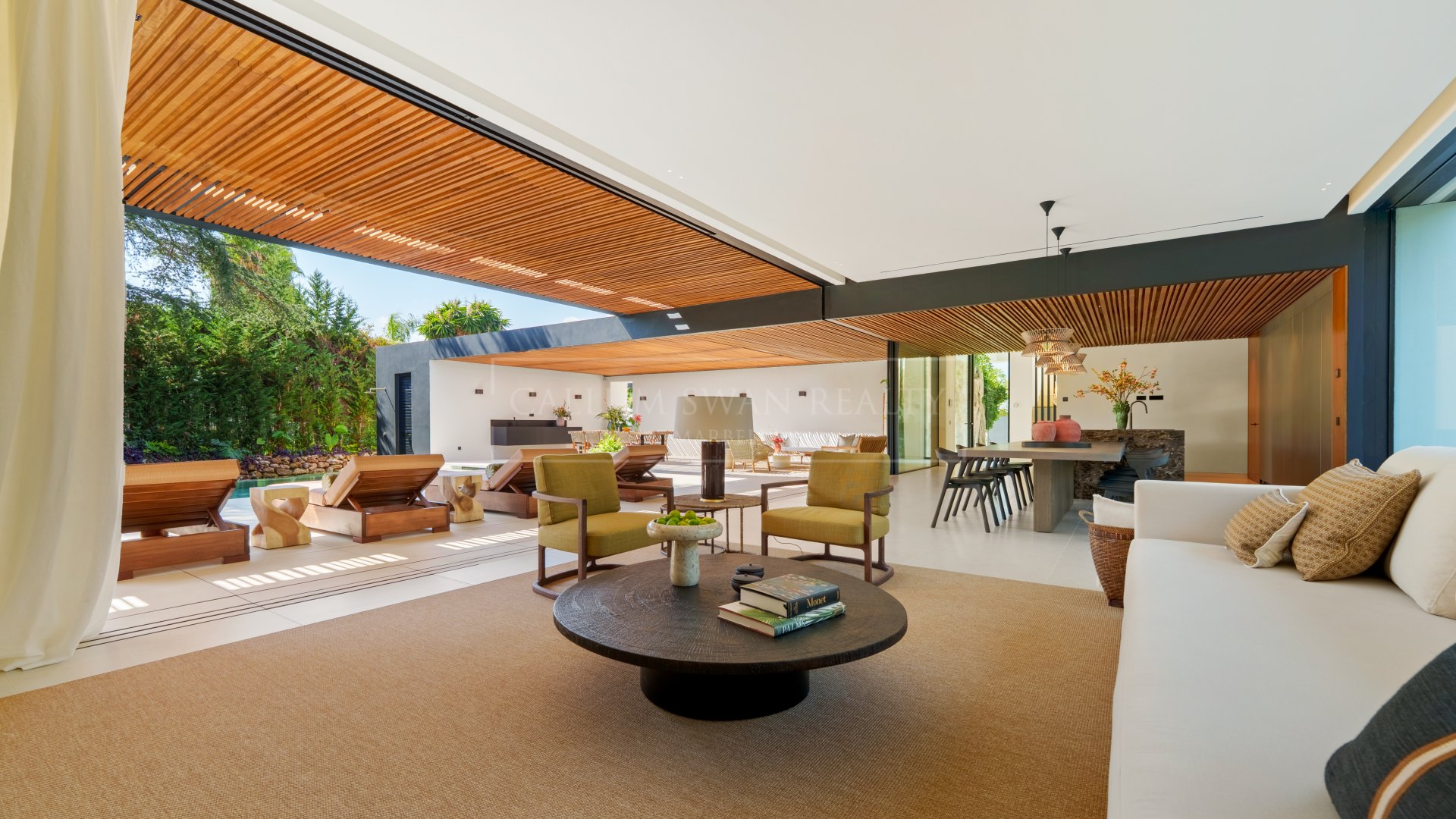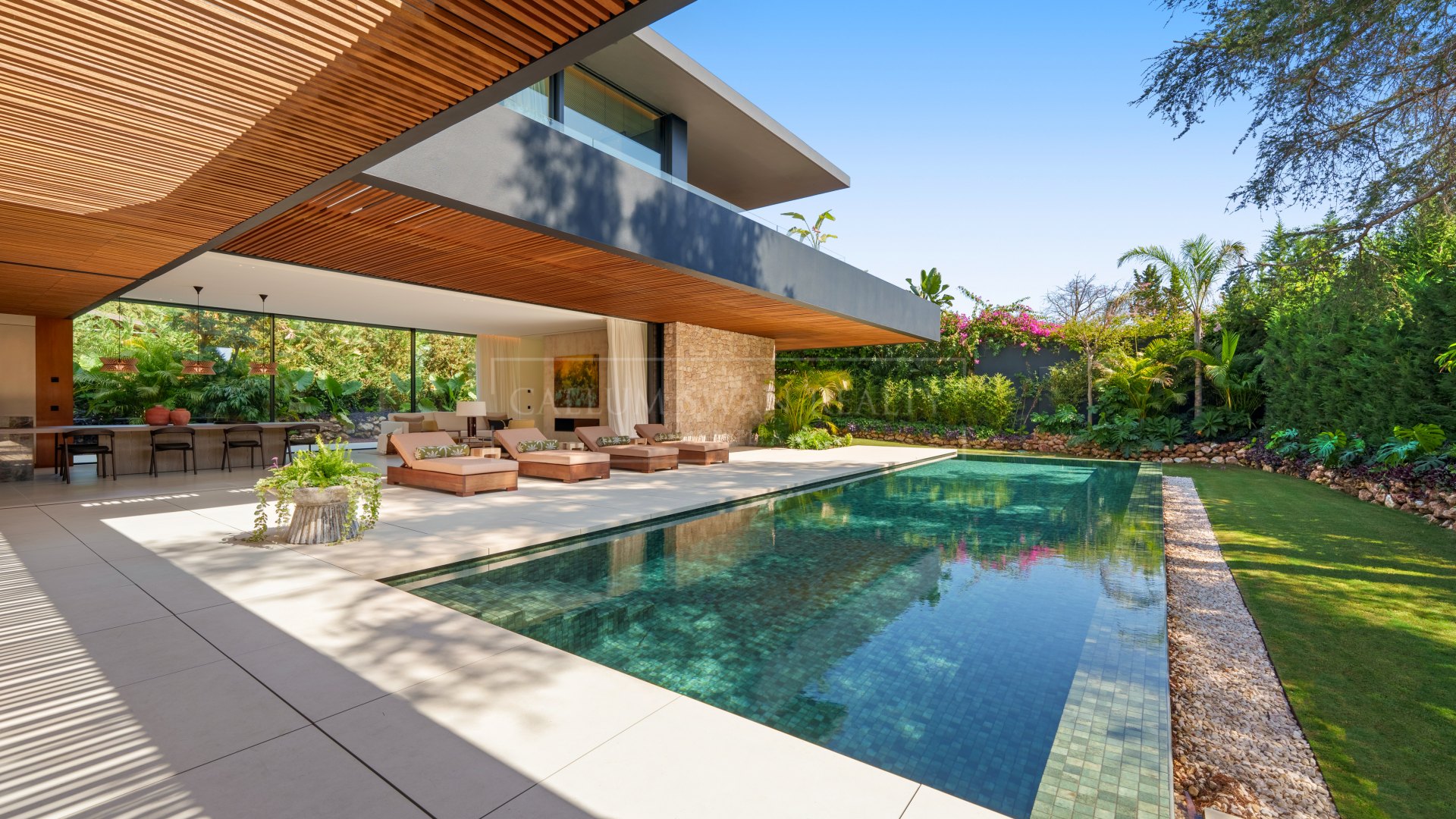 Esta excepcional propiedad, situada en el prestigioso Valle del Golf de Nueva Andalucía, combina la elegancia mediterránea con influencias balinesas contemporáneas. Situada en una parcela en ...