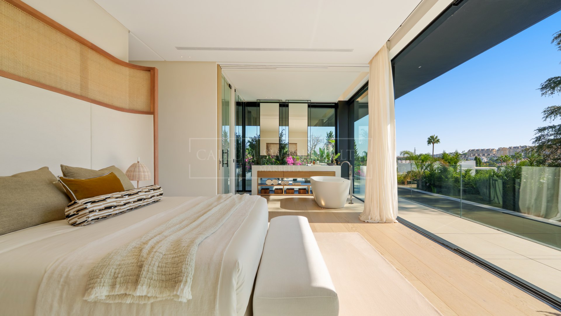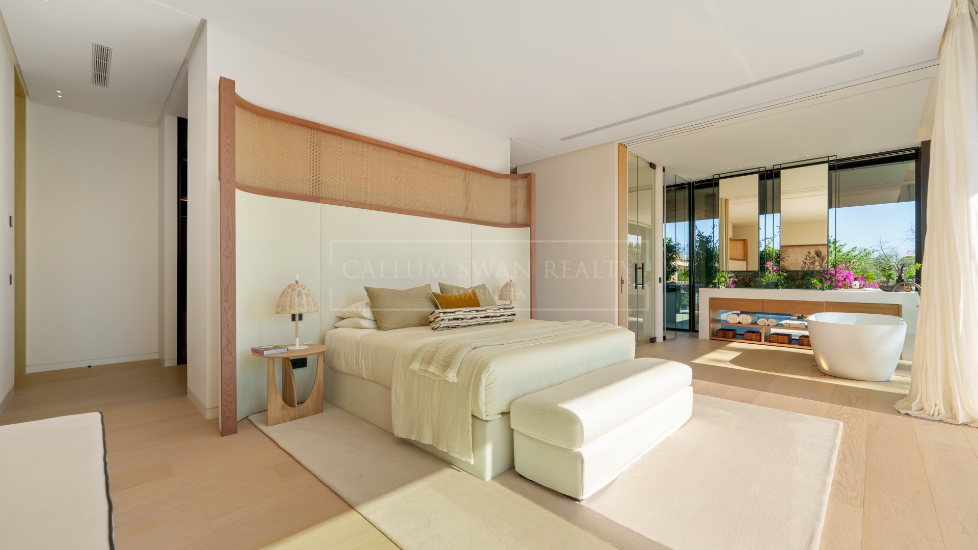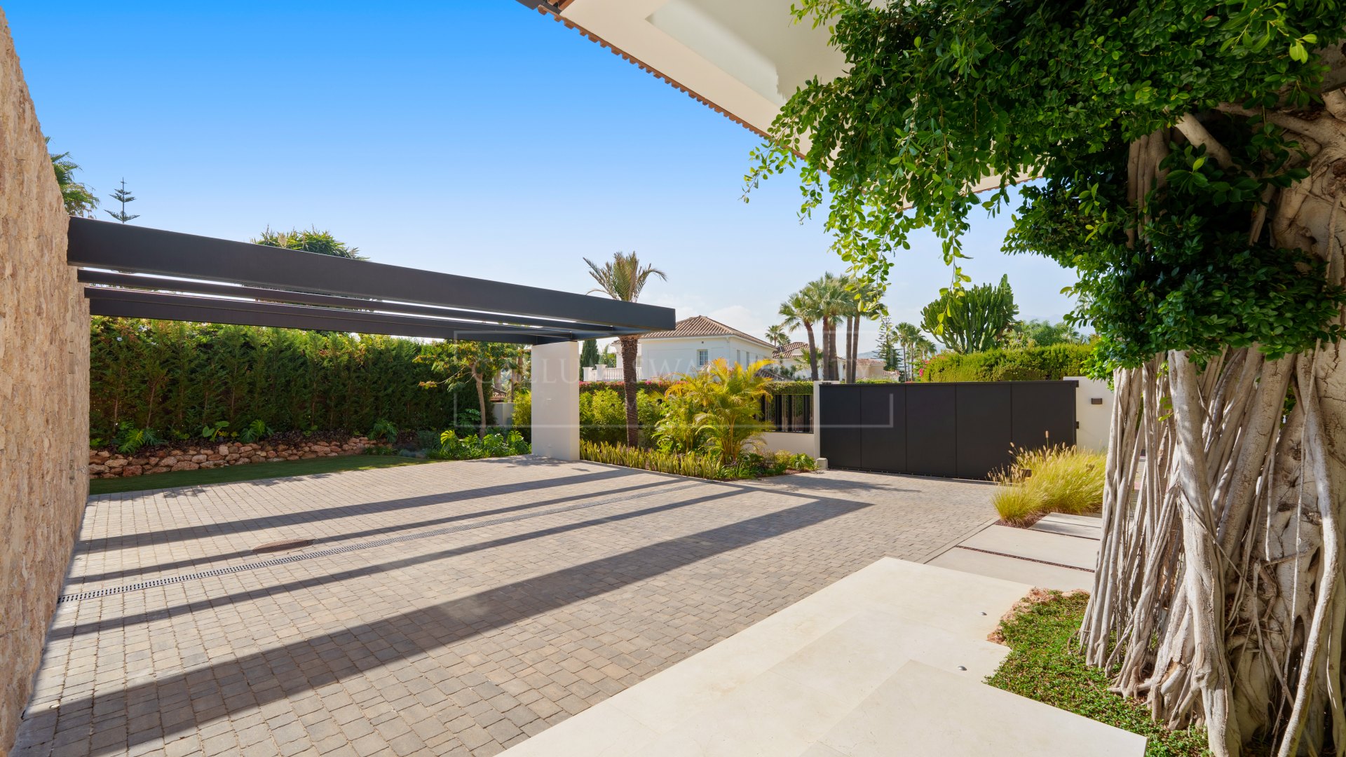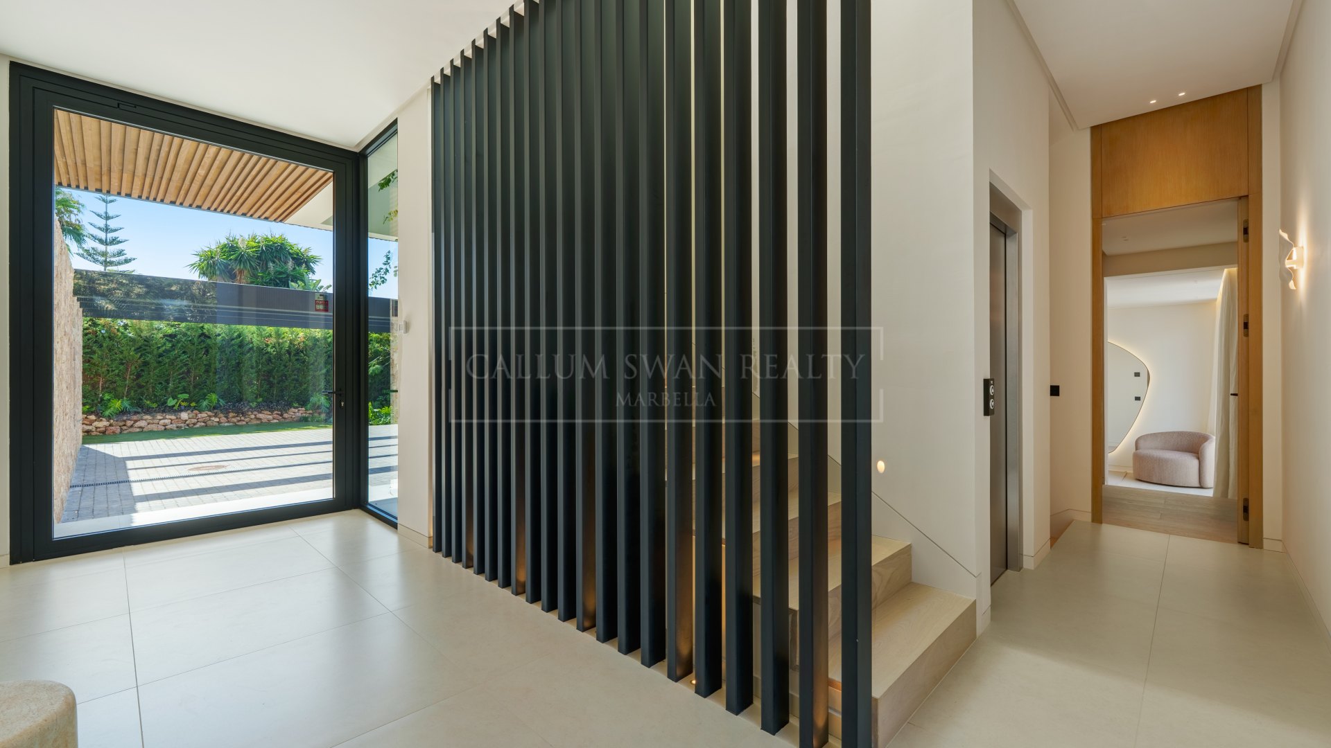 Situada dentro de la comunidad privada de Parcelas del Golf en Nueva Andalucía, esta villa de seis dormitorios de nueva construcción ofrece privacidad y comodidad. Situada en el Valle del Golf de Marbella, se encuentra a poca distancia en buggy de los campos de golf Las Brisas, Los Naranjos y Aloha, lo que la convierte en una excelente opción para los golfistas. Terminada en 2025, la villa ofrece fácil acceso a los principales destinos de Marbella, con la Milla de Oro y Puerto Banús a solo diez minutos, donde se encuentran restaurantes, boutiques, opciones de ocio y la playa.
