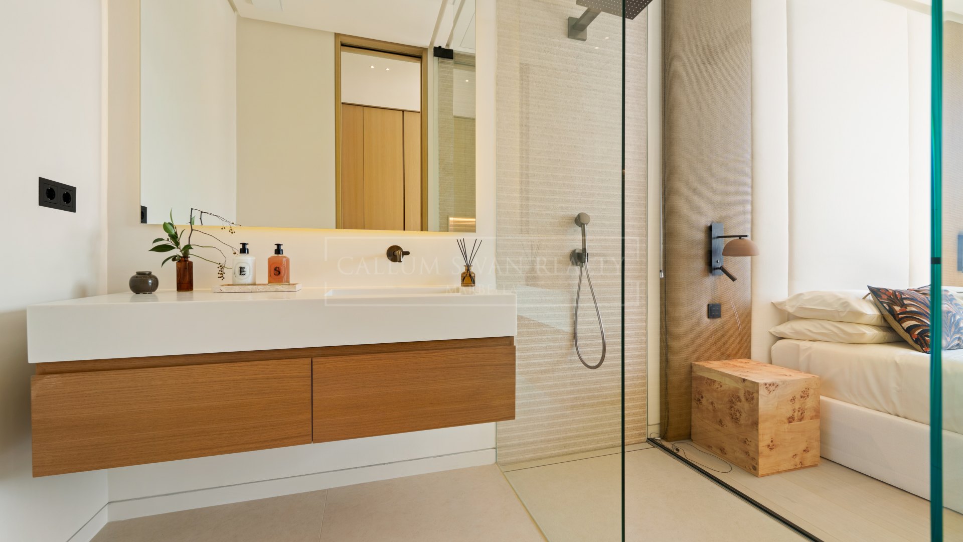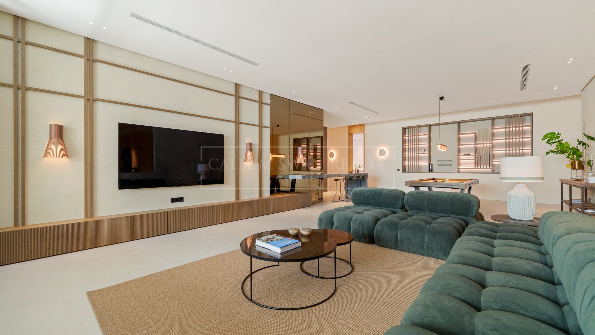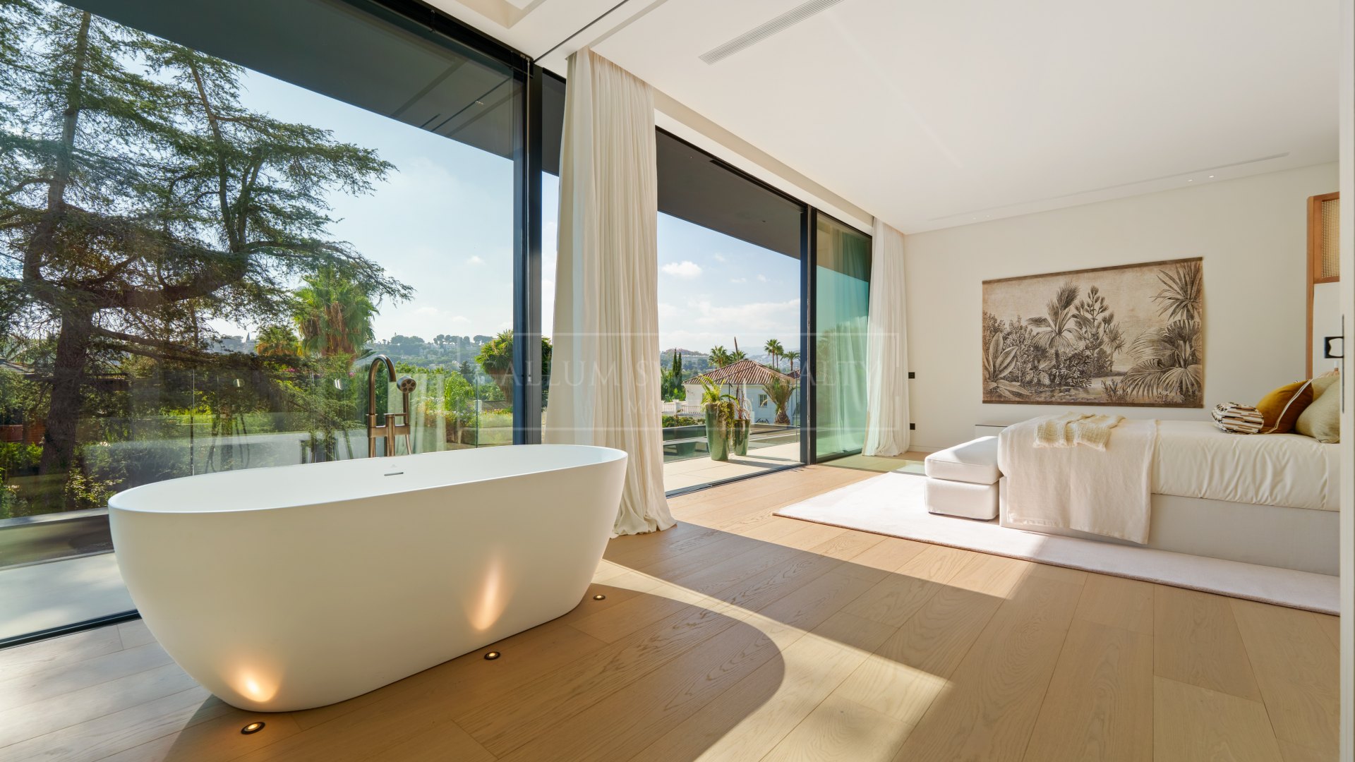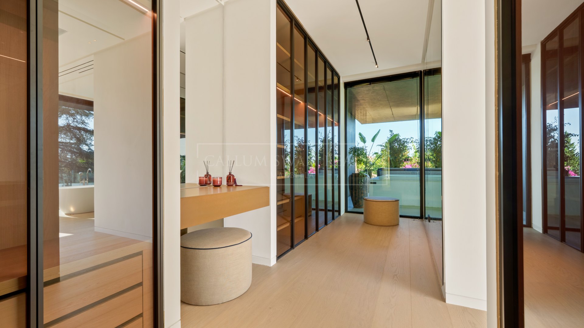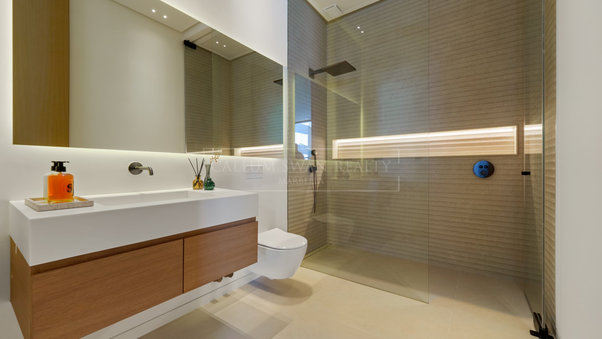 Situada dentro de la comunidad privada de Parcelas del Golf en Nueva Andalucía, esta villa de seis dormitorios de nueva construcción ofrece privacidad y comodidad. Situada en el Valle del Golf de Marbella, se encuentra a poca distancia en buggy de los campos de golf Las Brisas, Los Naranjos y Aloha, lo que la convierte en una excelente opción para los golfistas. Terminada en 2025, la villa ofrece fácil acceso a los principales destinos de Marbella, con la Milla de Oro y Puerto Banús a solo diez minutos, donde se encuentran restaurantes, boutiques, opciones de ocio y la playa.