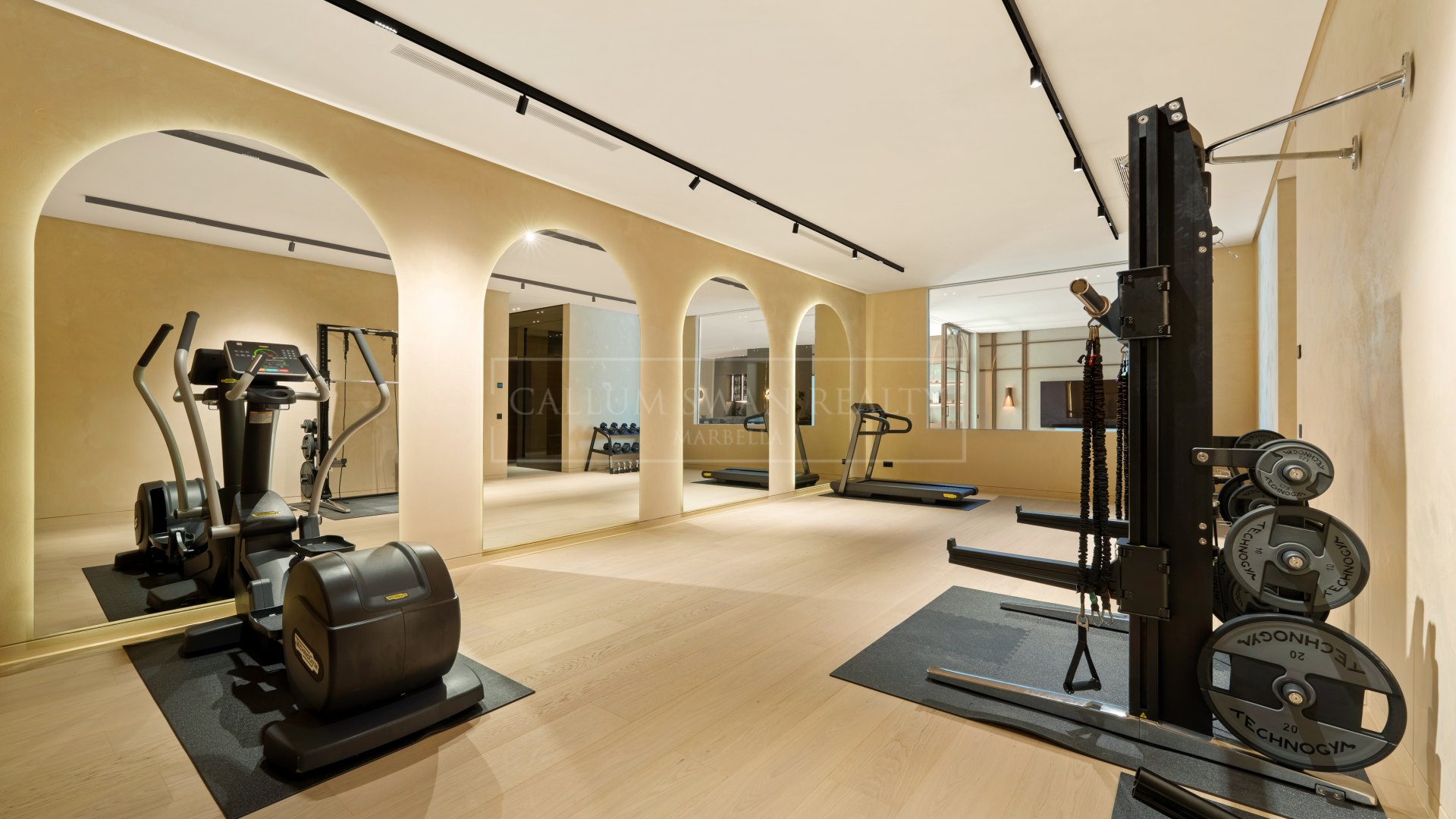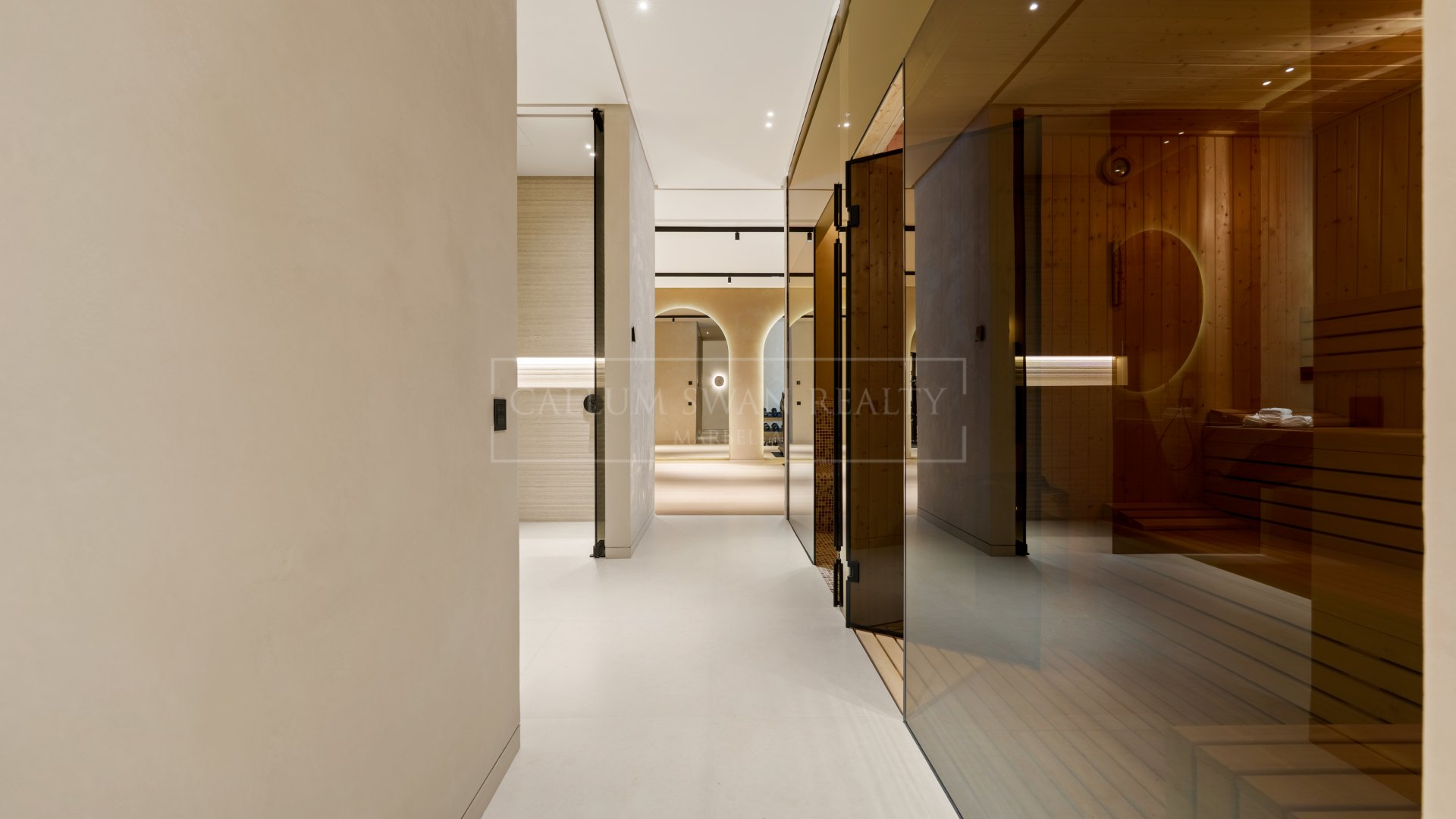 El sótano combina el entretenimiento y la relajación con la practicidad, con una amplia sala de juegos con bar y zona de televisión que conecta con una luminosa oficina, un gimnasio totalmente equipado con sauna, dos dormitorios de invitados con baño en suite y un lavadero independiente. La oficina y los dormitorios se abren a patios ingleses, lo que permite que la luz natural ilumine toda la planta.