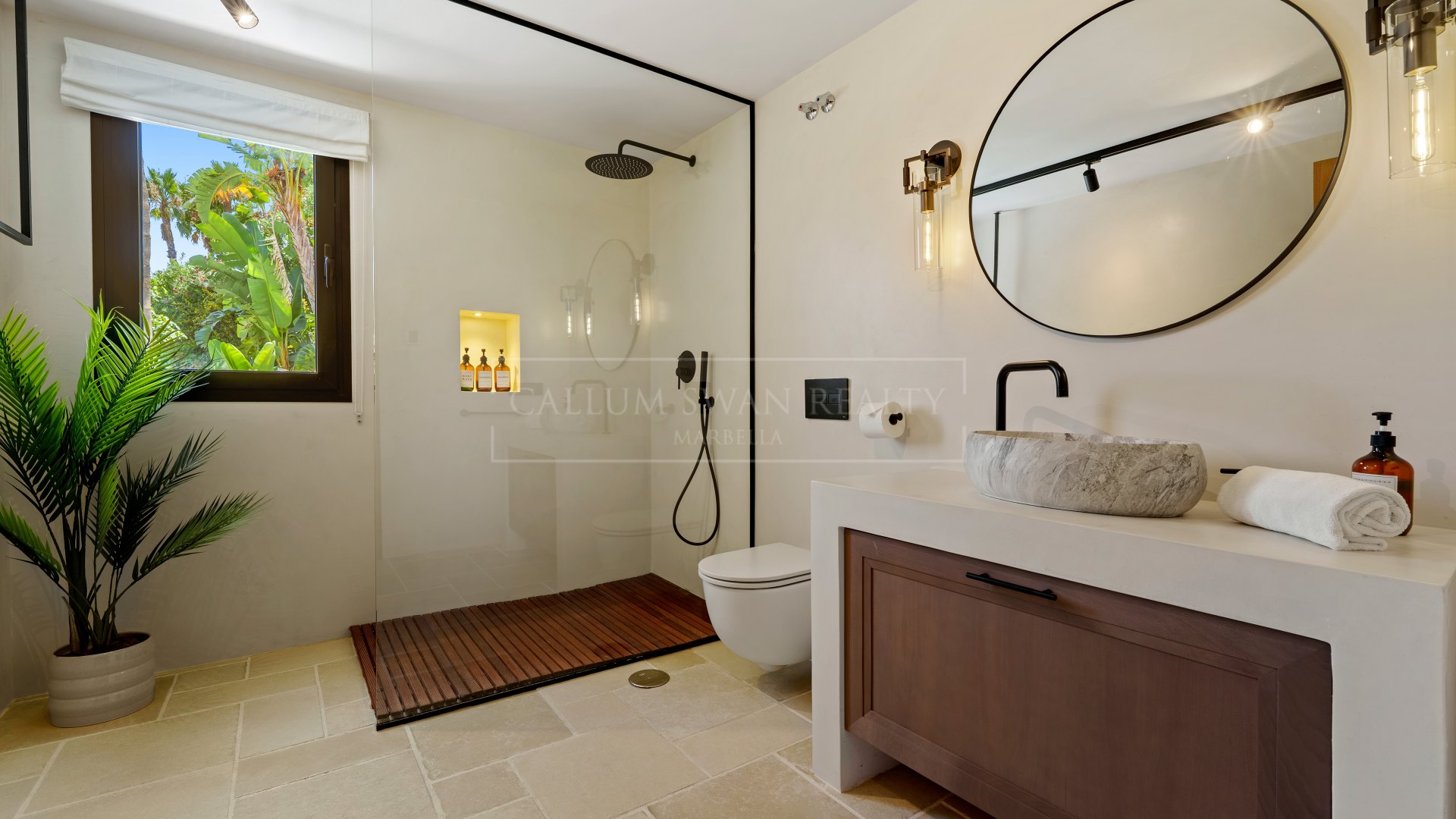 Esta villa de estilo andaluz con seis dormitorios está situada en el corazón del Valle del Golf, en Nueva Andalucía, rodeada de campos de golf de renombre como Las Brisas, Los Naranjos y Aloha Golf. A pocos minutos de Puerto Banús y de la Milla de Oro de Marbella, la zona ofrece excelentes colegios internacionales, una gran variedad de instalaciones deportivas y de ocio, restaurantes de alta cocina, boutiques y fácil acceso a la playa. La propiedad combina privacidad, un diseño encantador y amplias comodidades con una ubicación privilegiada.