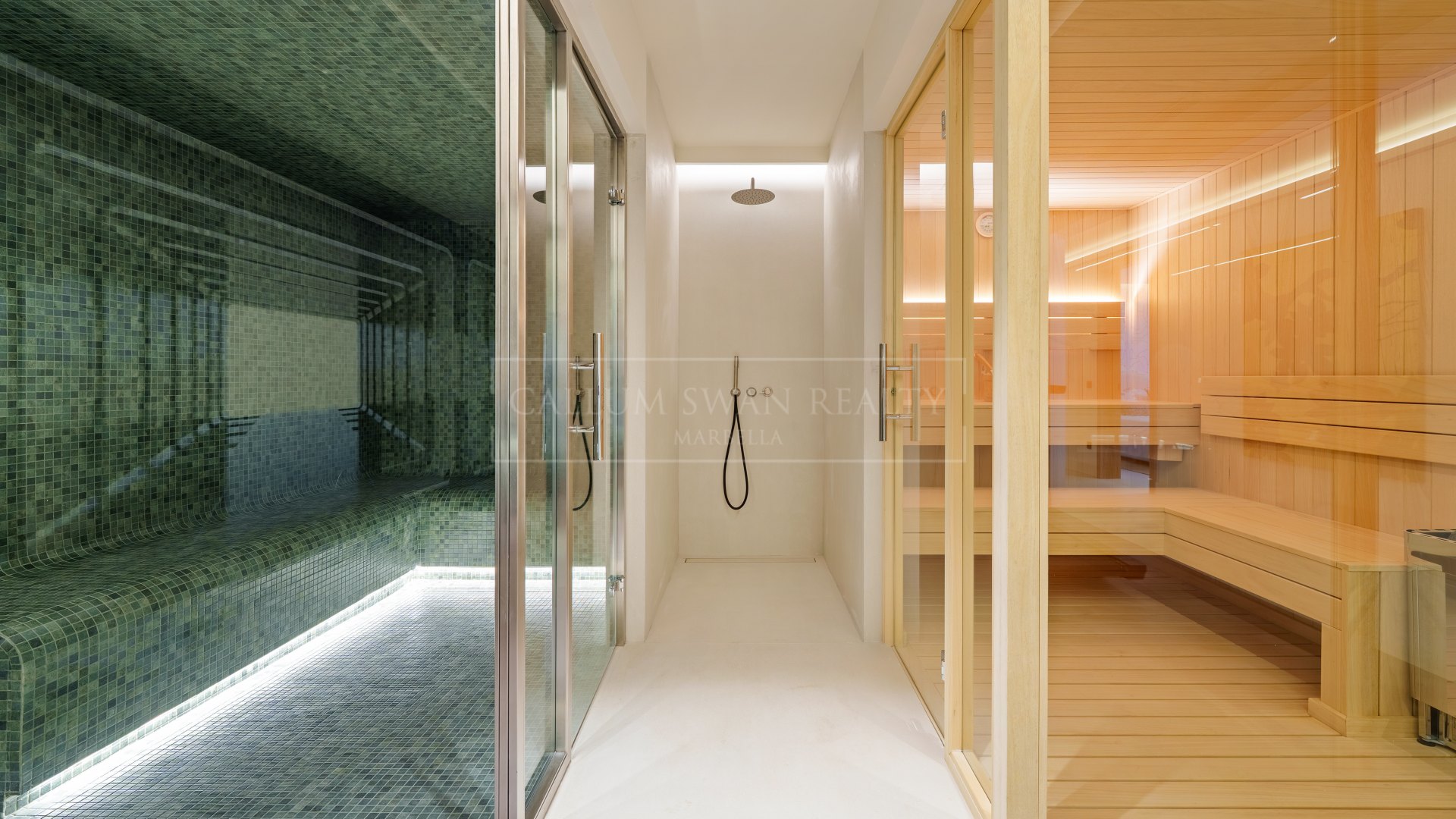 El nivel inferior incluye dos dormitorios adicionales para invitados con baño en suite, un gimnasio espacioso, sauna y hammam, así como una sala de entretenimiento con bodega. Una sala de lavandería, aseo de invitados, zona de almacenamiento y un garaje privado para dos vehículos añaden practicidad y confort al hogar, complementado con aire acondicionado completo.