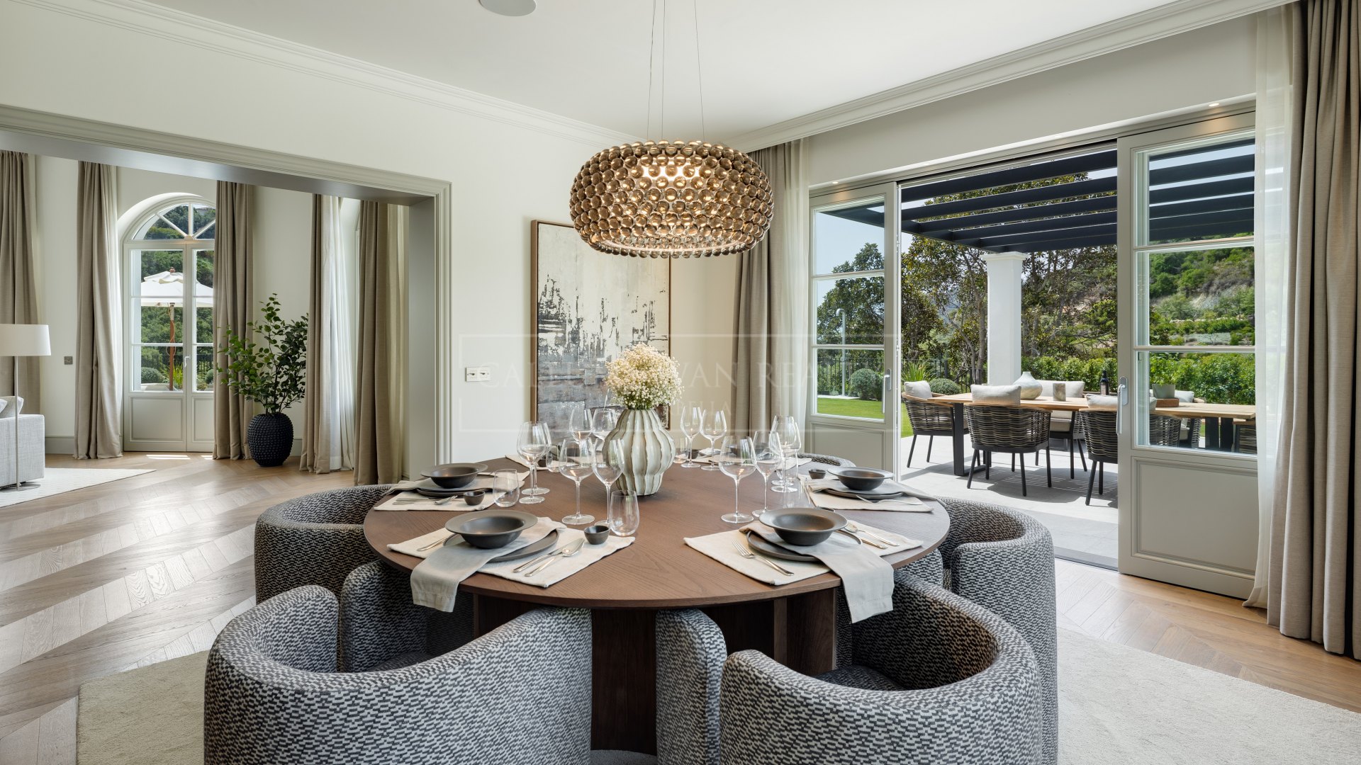 Cette élégante villa de cinq chambres a été récemment rénovée et se trouve dans la communauté fermée exclusive de La Zagaleta, à Benahavís. Située dans les collines qui surplombent Marbella, La Zagaleta s‘étend sur 900 hectares de paysage vierge et offre à ses résidents un style de vie vraiment privilégié. Le domaine dispose de deux parcours de golf privés de 18 trous, d’un héliport, d’un centre équestre, de clubs-houses raffinés et d’un service de sécurité 24 heures sur 24. Malgré son environnement isolé, la propriété bénéficie d’une excellente accessibilité, à seulement 15 minutes de la plage, de la Golden Mile de Marbella et de la célèbre Vallée du Golf, avec les aéroports de Malaga et Gibraltar à moins d’une heure.
