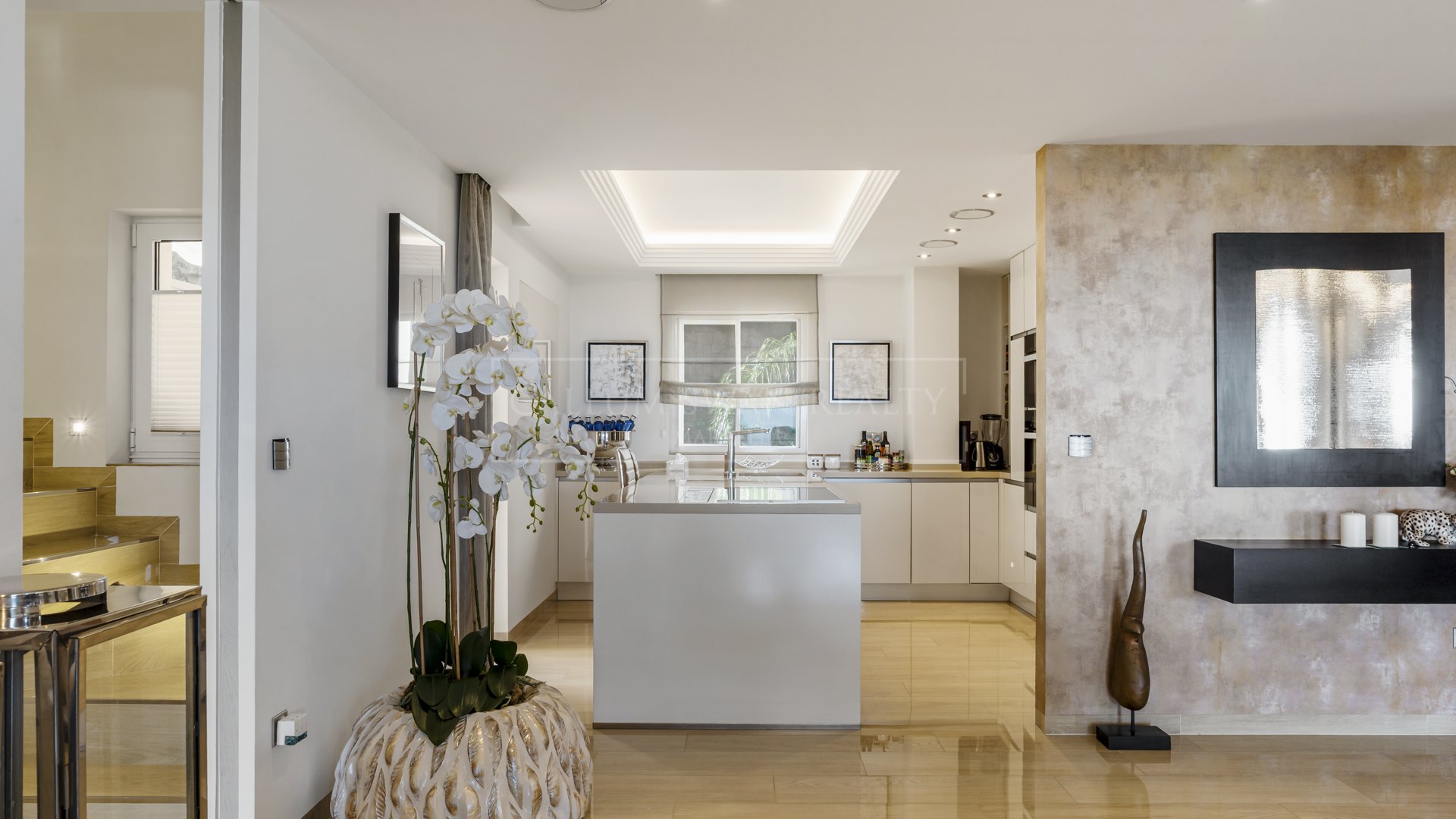 Les caractéristiques supplémentaires incluent la climatisation, le chauffage par le sol dans tout l’appartement, un système de domotique, un ascenseur intérieur, deux places de garage et une cave.