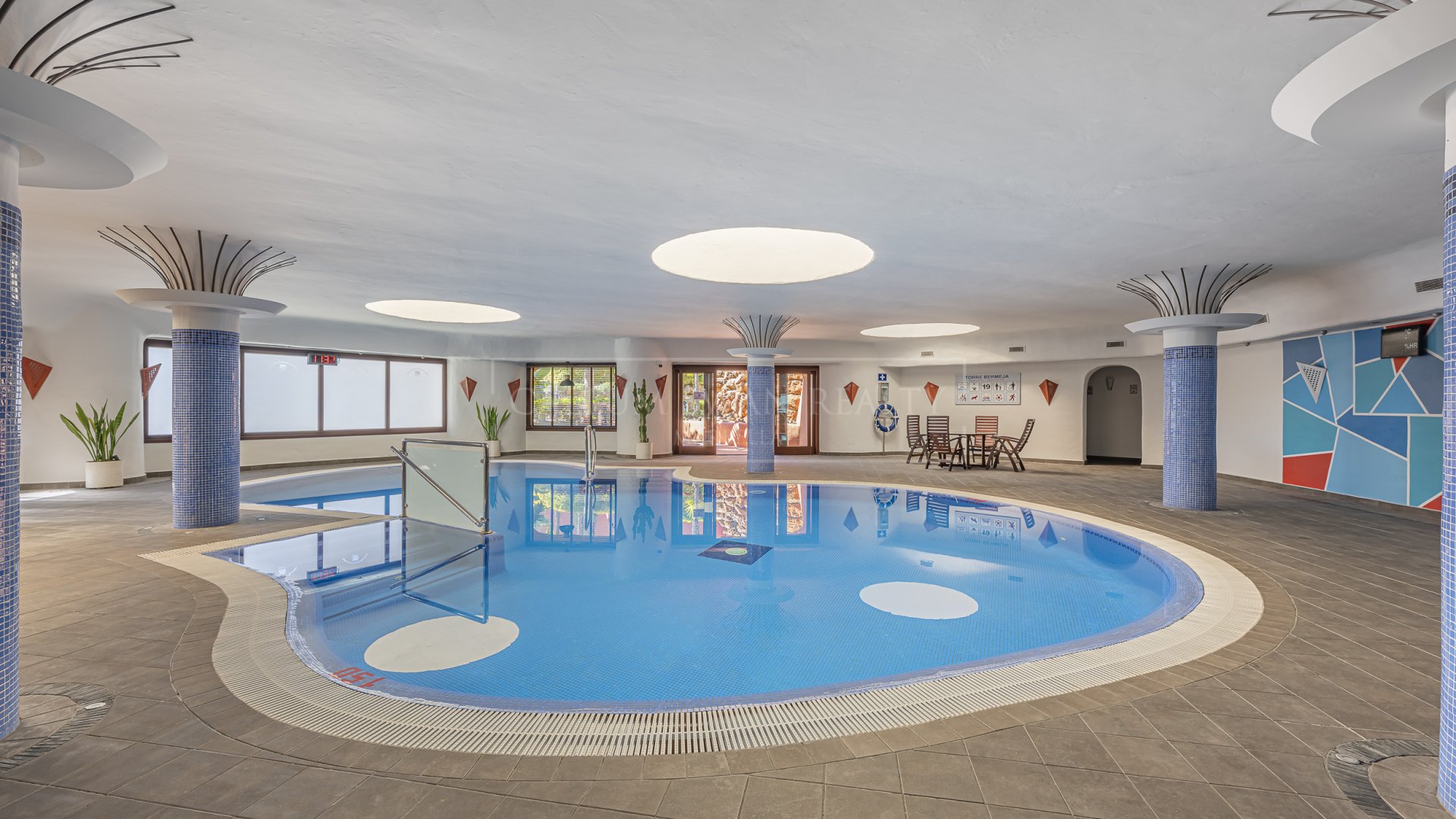 La communauté fermée offre une sécurité 24 heures sur 24, assurant intimité et tranquillité d’esprit aux résidents. Torre Bermeja est reconnue pour ses installations communes bien entretenues, comprenant deux piscines extérieures, une piscine intérieure chauffée utilisable toute l’année, un sauna, des jardins tropicaux paysagers et une salle de sport entièrement équipée. Les résidents bénéficient également d’un accès direct à la plage et à la promenade.