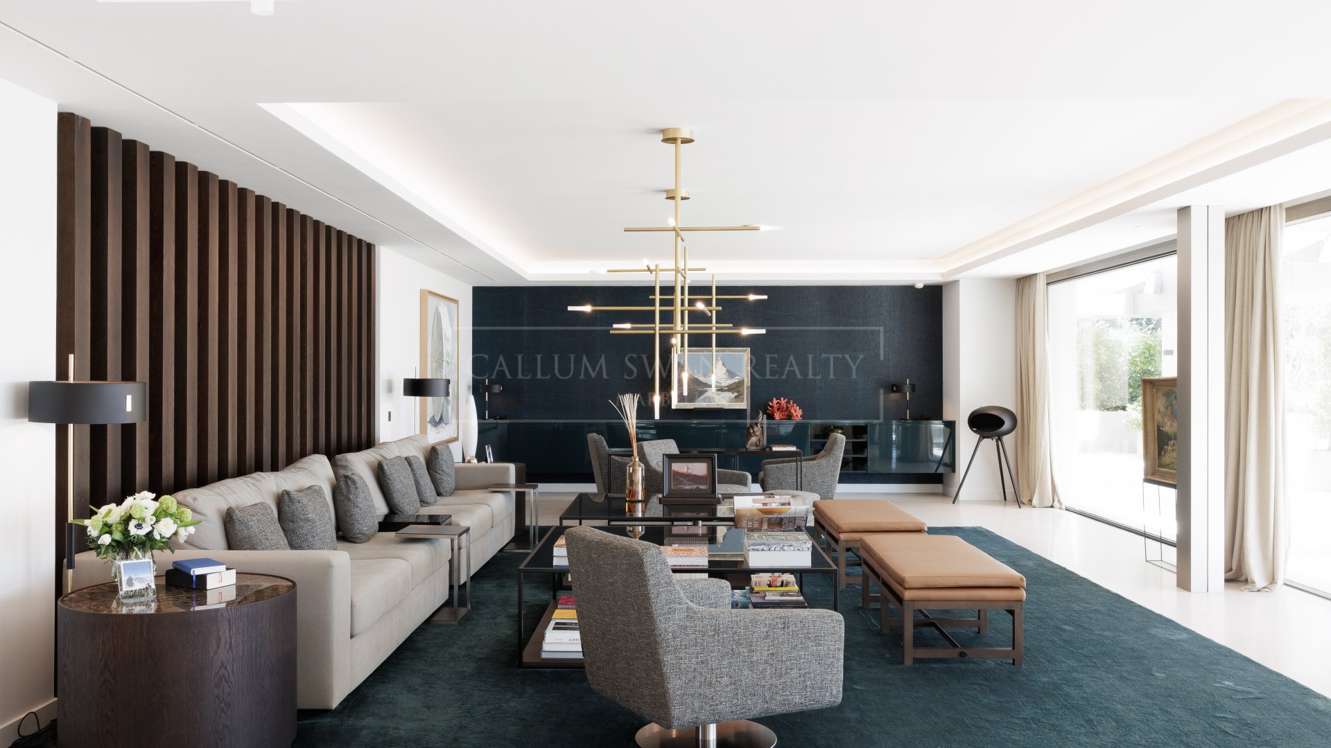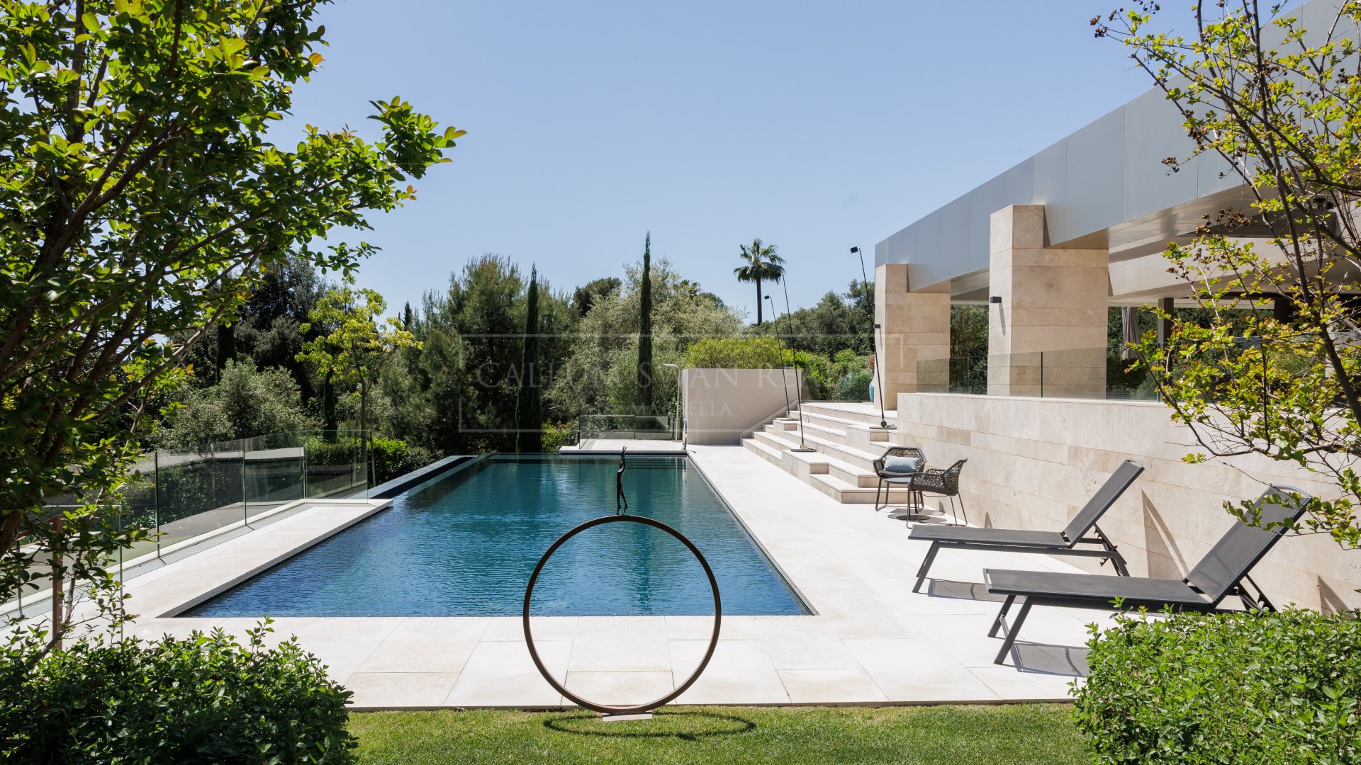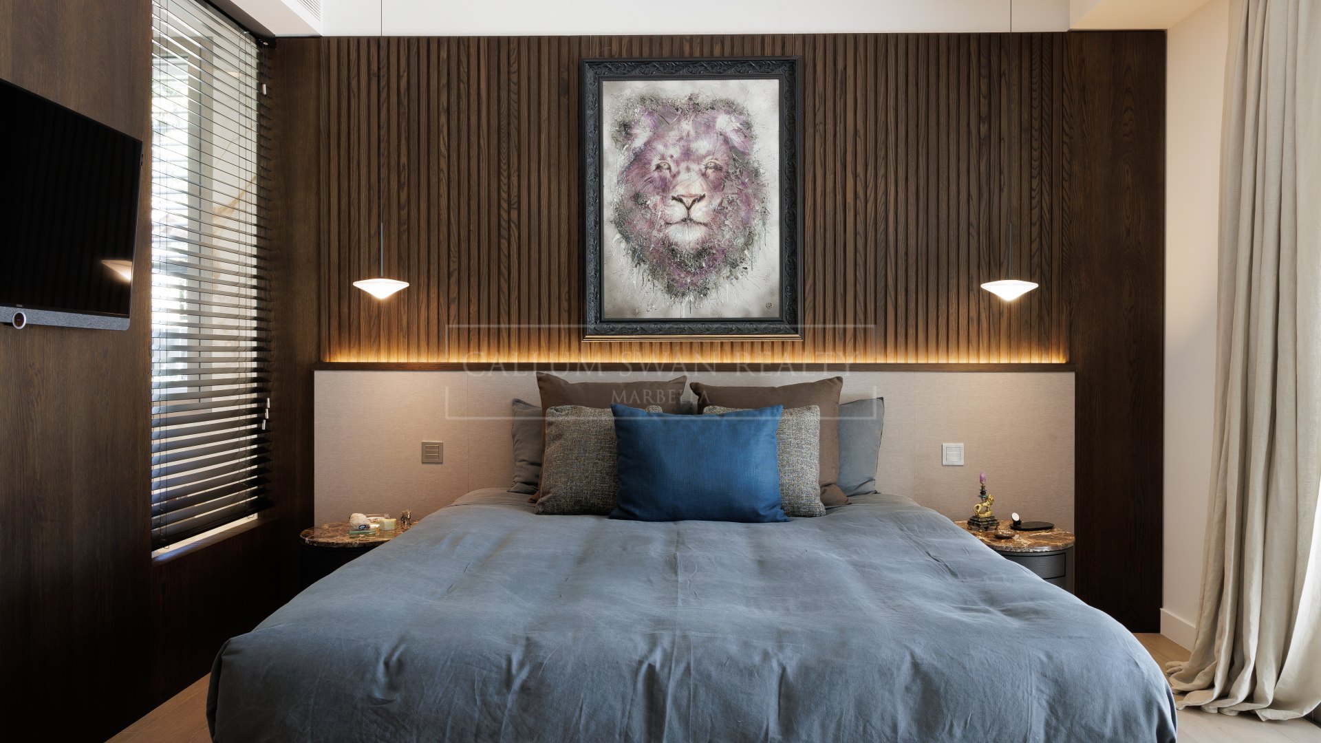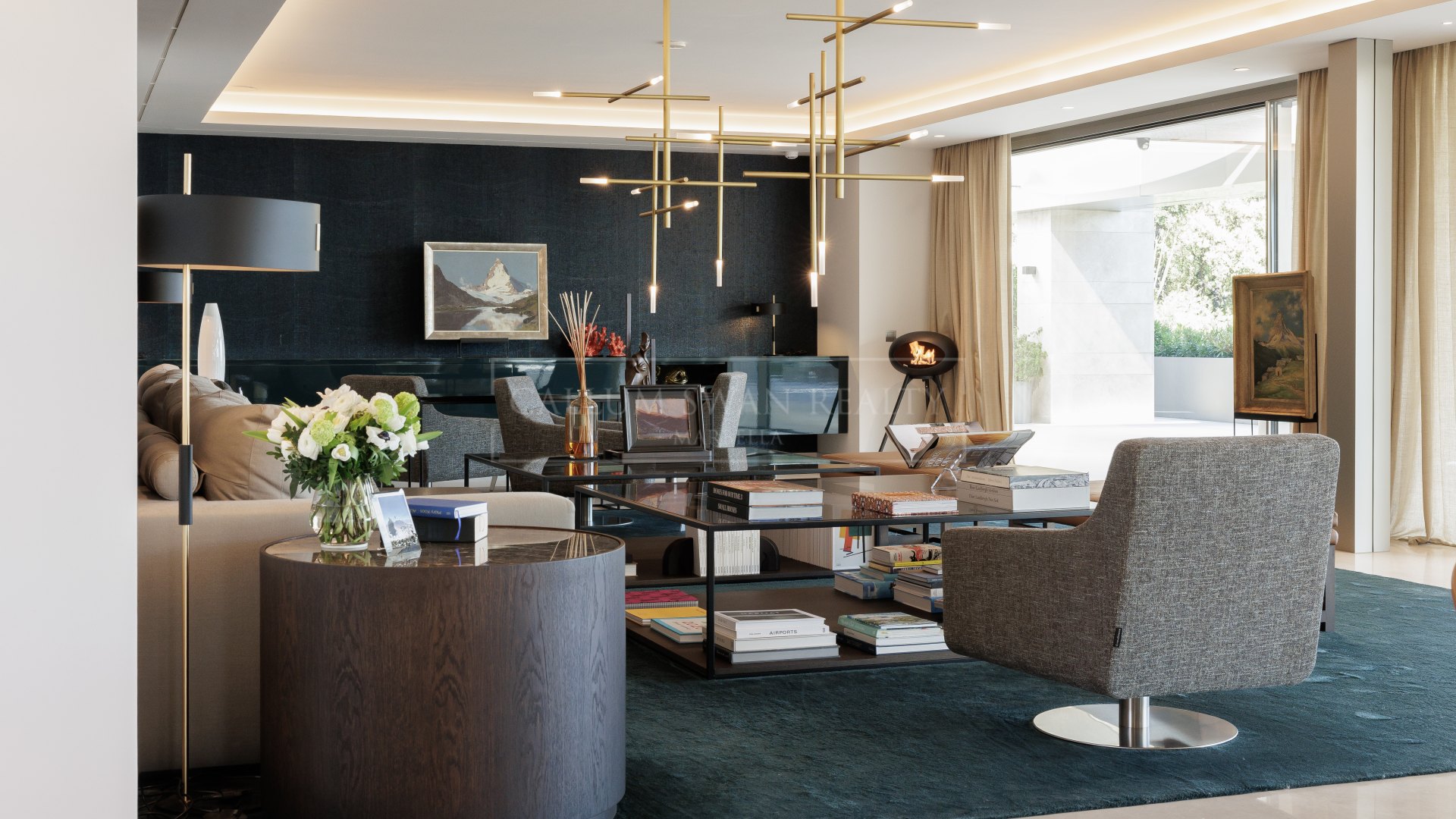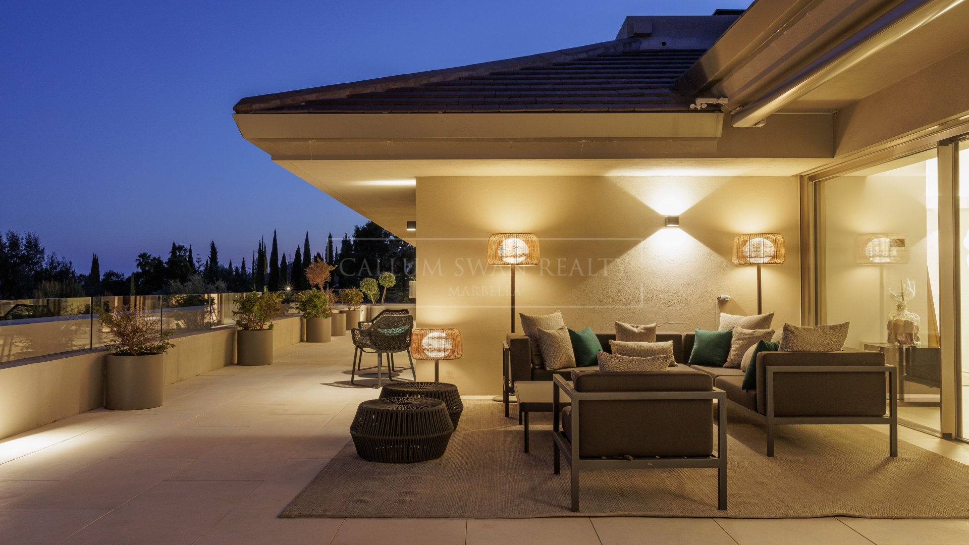 Le design intérieur se prolonge sur les terrasses extérieures, idéales pour recevoir ou profiter d’un repas en plein air au bord de la piscine d’eau salée chauffée. Le bureau privé et la suite d’invités situés au rez-de-chaussée ajoutent à la fonctionnalité de l’ensemble. À l‘étage supérieur, on trouve une superbe suite principale avec dressing, salon privé et accès direct à une terrasse panoramique offrant une vue sur la mer et le cadre naturel de la Sierra Blanca. Une deuxième chambre avec salle de bains complète ce niveau, avec la possibilité d’ajouter une cinquième chambre si vous le souhaitez. Le niveau inférieur a été conçu pour être un espace spa privé avec une piscine intérieure chauffée, un sauna, une salle de sport entièrement équipée, un home cinéma, une cave à vin climatisée et une salle de divertissement. Le garage fermé pouvant accueillir cinq véhicules complète cet étage.