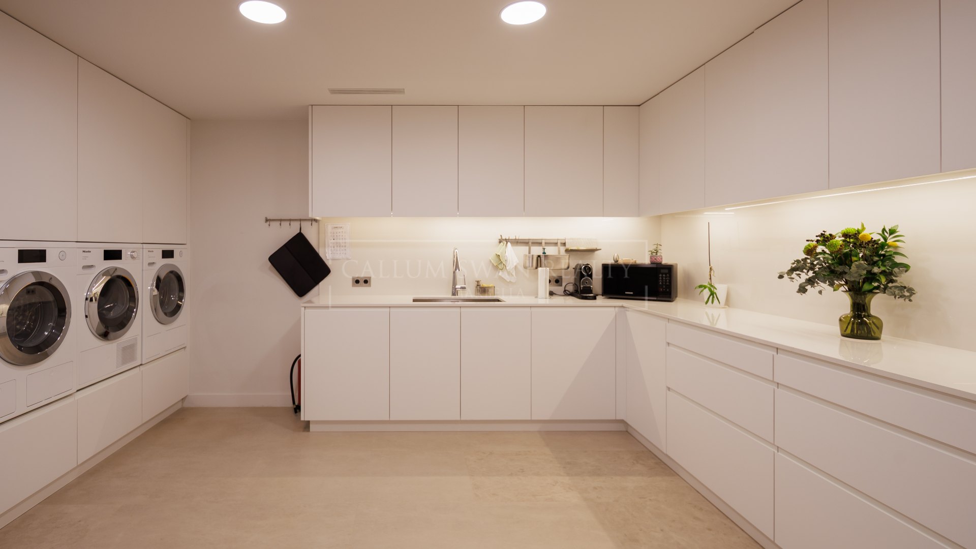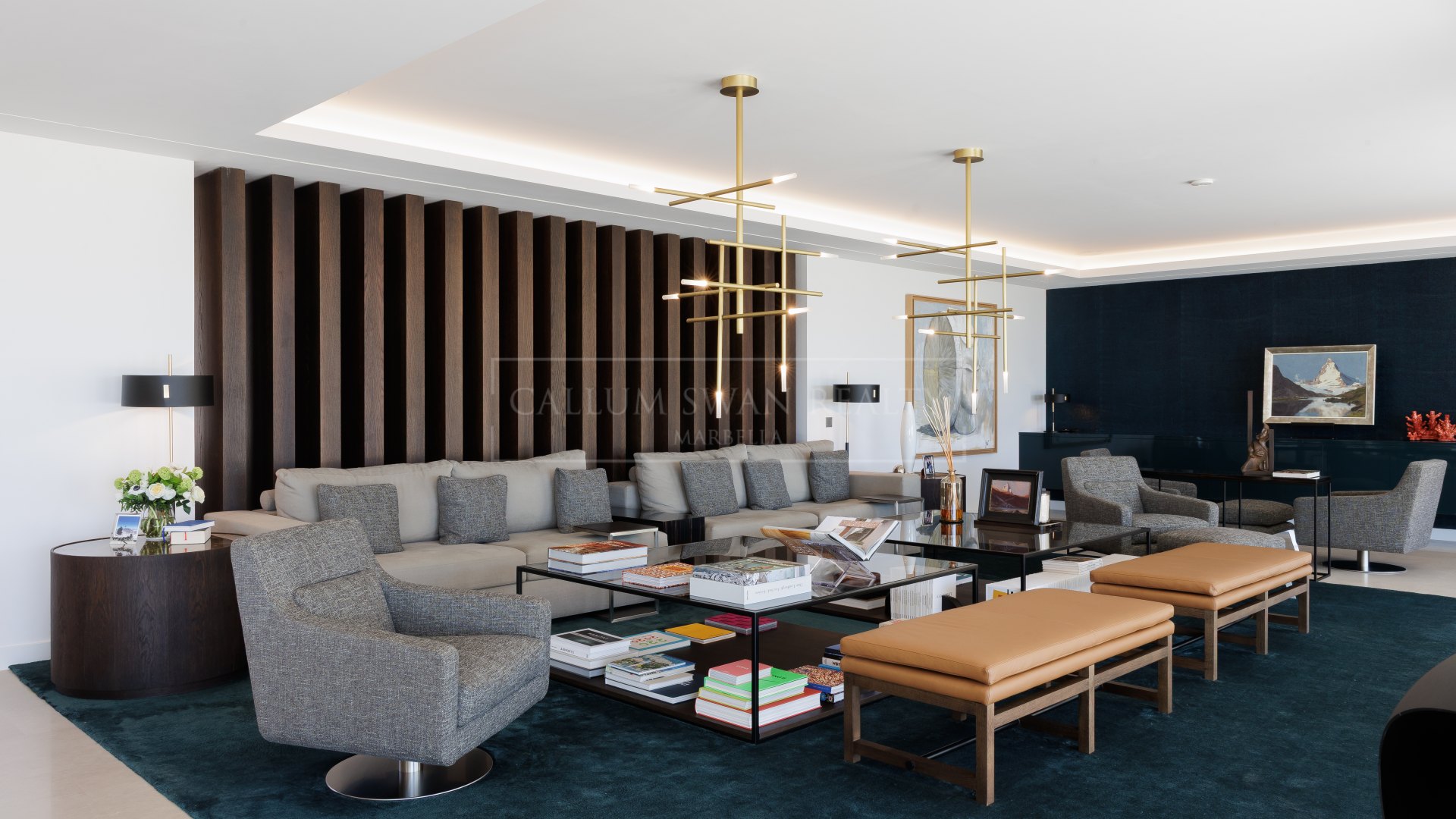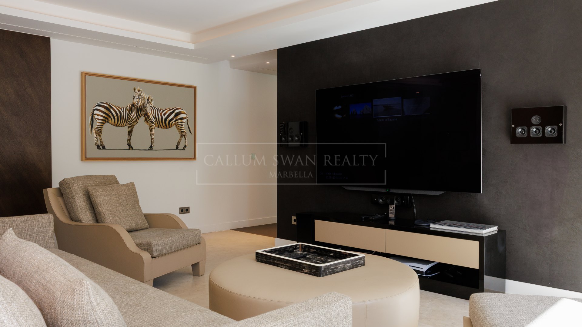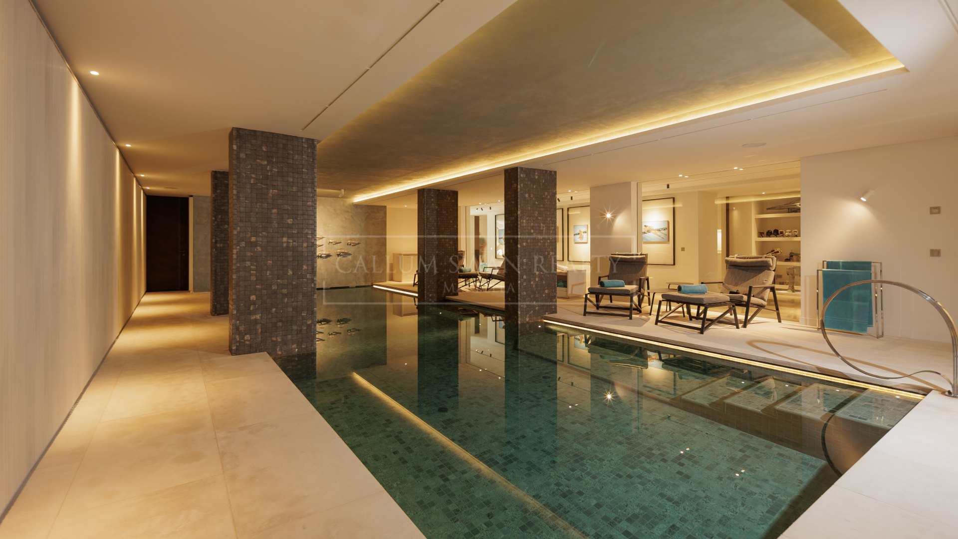 Le design intérieur se prolonge sur les terrasses extérieures, idéales pour recevoir ou profiter d’un repas en plein air au bord de la piscine d’eau salée chauffée. Le bureau privé et la suite d’invités situés au rez-de-chaussée ajoutent à la fonctionnalité de l’ensemble. À l‘étage supérieur, on trouve une superbe suite principale avec dressing, salon privé et accès direct à une terrasse panoramique offrant une vue sur la mer et le cadre naturel de la Sierra Blanca. Une deuxième chambre avec salle de bains complète ce niveau, avec la possibilité d’ajouter une cinquième chambre si vous le souhaitez. Le niveau inférieur a été conçu pour être un espace spa privé avec une piscine intérieure chauffée, un sauna, une salle de sport entièrement équipée, un home cinéma, une cave à vin climatisée et une salle de divertissement. Le garage fermé pouvant accueillir cinq véhicules complète cet étage.
