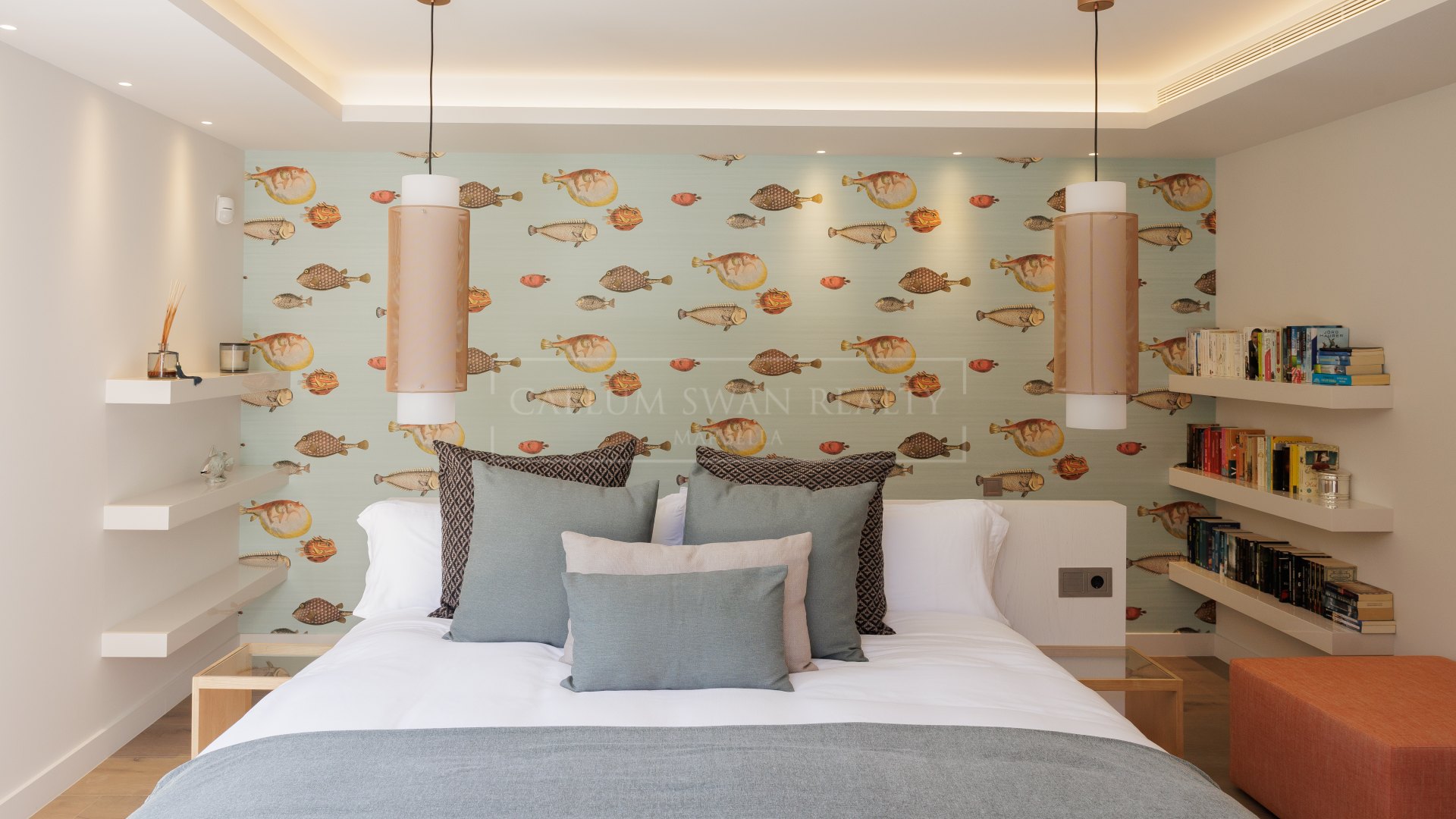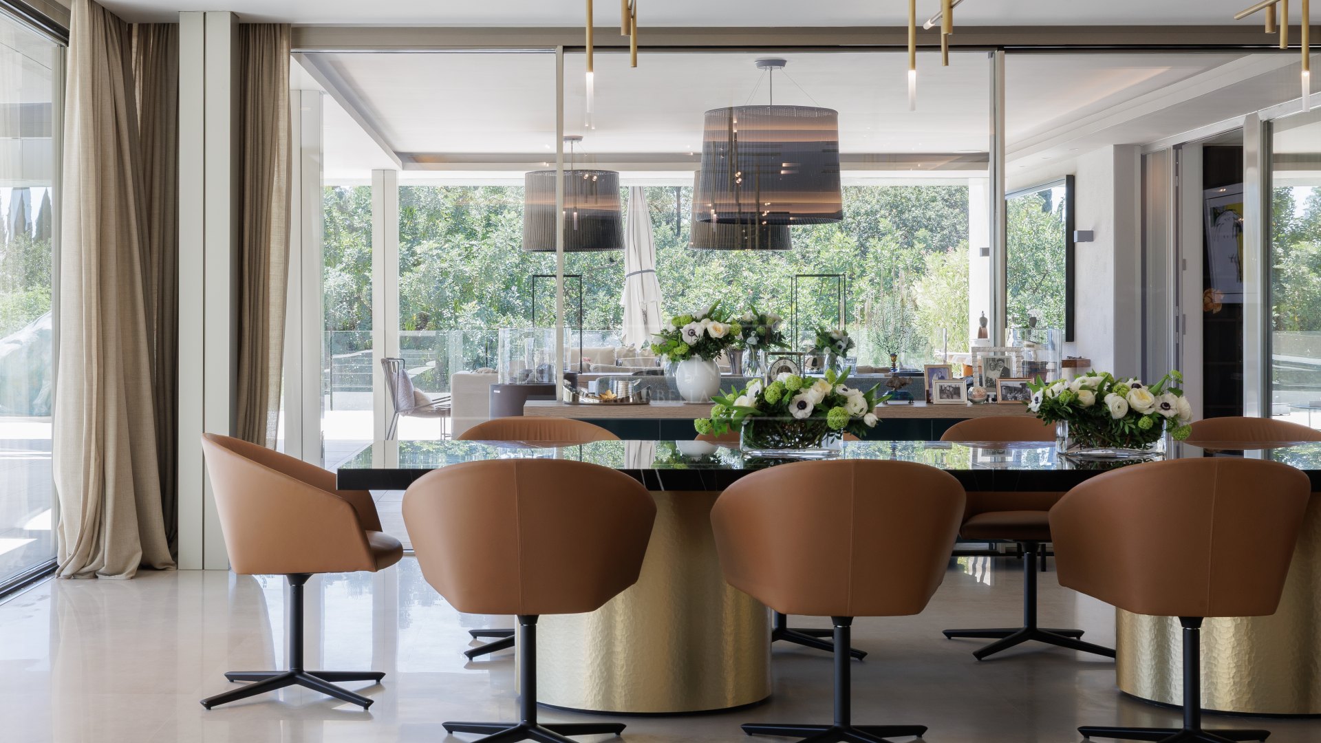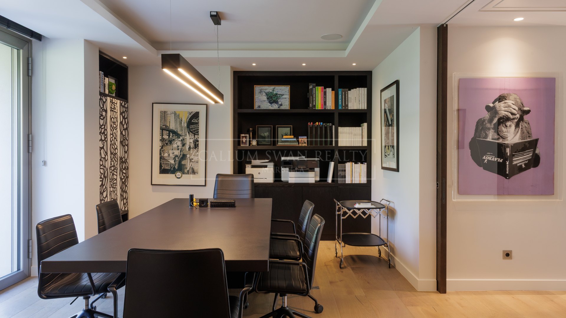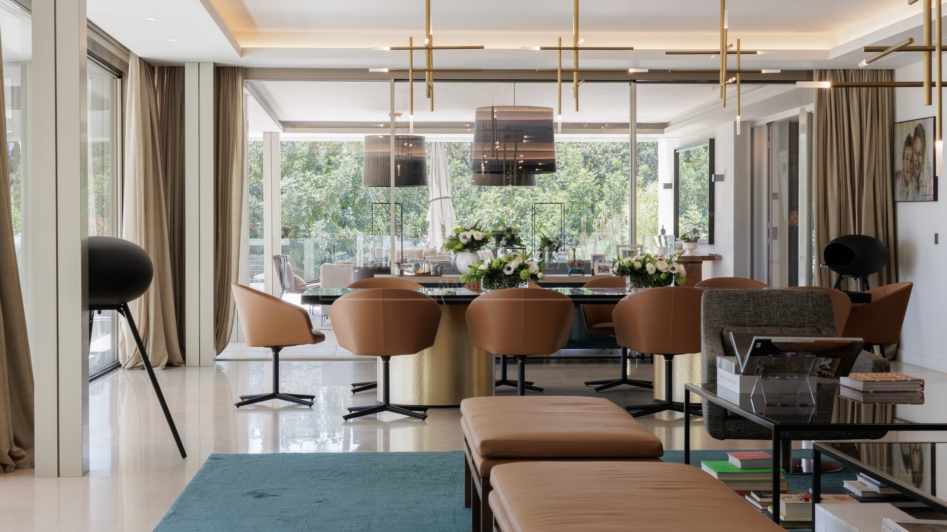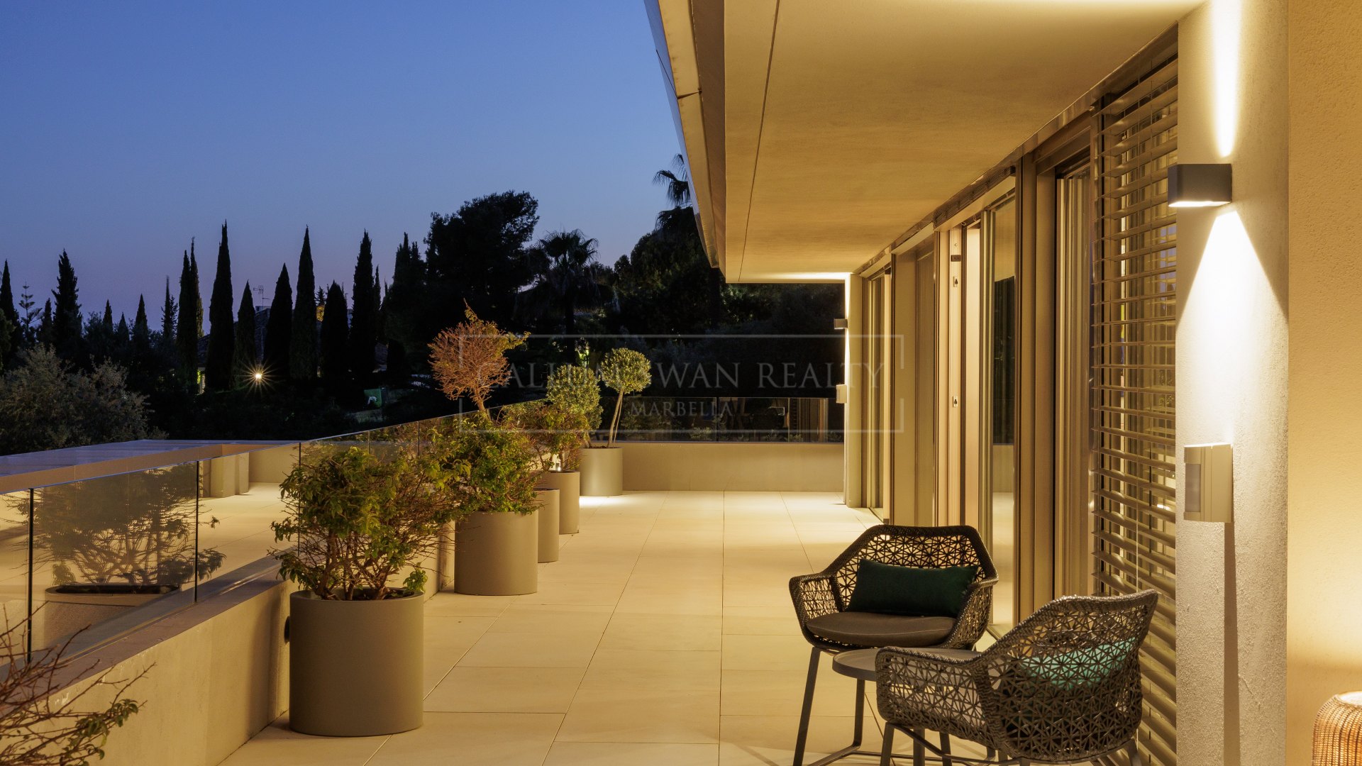 Le design intérieur se prolonge sur les terrasses extérieures, idéales pour recevoir ou profiter d’un repas en plein air au bord de la piscine d’eau salée chauffée. Le bureau privé et la suite d’invités situés au rez-de-chaussée ajoutent à la fonctionnalité de l’ensemble. À l‘étage supérieur, on trouve une superbe suite principale avec dressing, salon privé et accès direct à une terrasse panoramique offrant une vue sur la mer et le cadre naturel de la Sierra Blanca. Une deuxième chambre avec salle de bains complète ce niveau, avec la possibilité d’ajouter une cinquième chambre si vous le souhaitez. Le niveau inférieur a été conçu pour être un espace spa privé avec une piscine intérieure chauffée, un sauna, une salle de sport entièrement équipée, un home cinéma, une cave à vin climatisée et une salle de divertissement. Le garage fermé pouvant accueillir cinq véhicules complète cet étage.